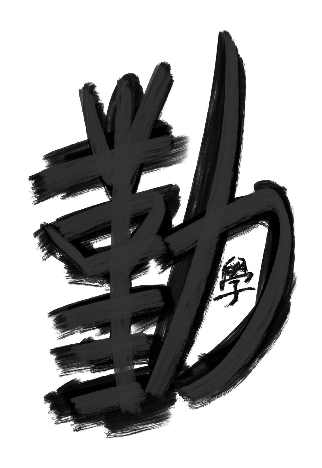以文字書寫的方式,表達出俐落又輕快的感覺,勤學對於每個人都 是很重要的,因此選擇了勤學這詞。