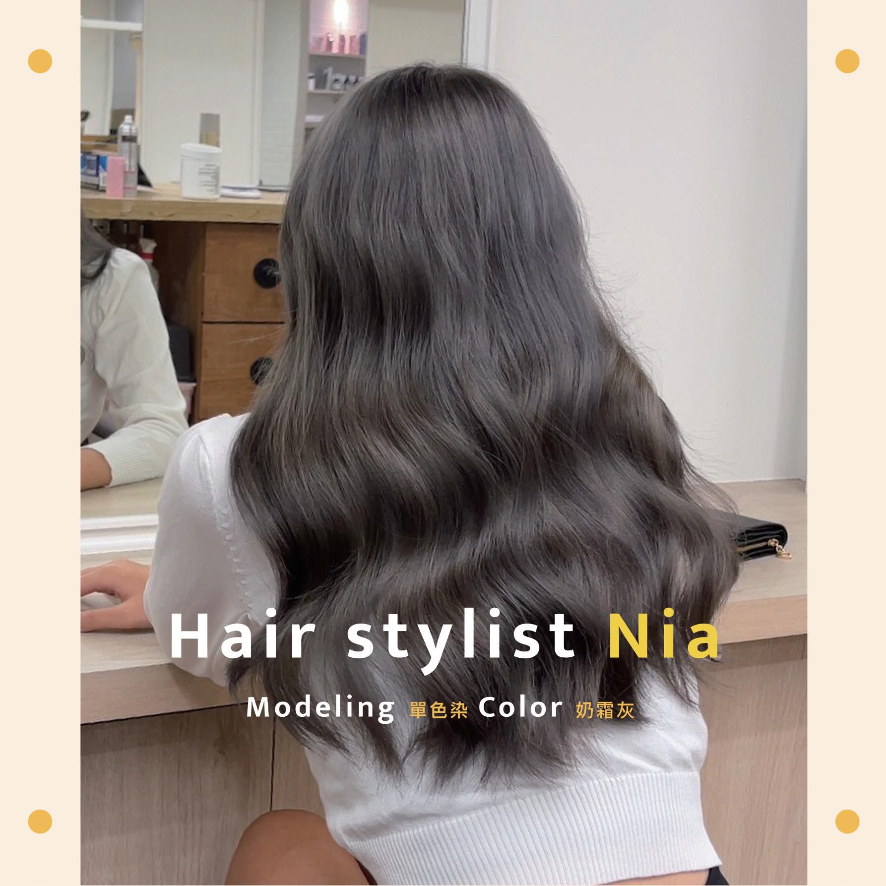 HEYYHAIR作品貼文模板設計,採用設計師美髮照結合主視覺色 調作為設計。