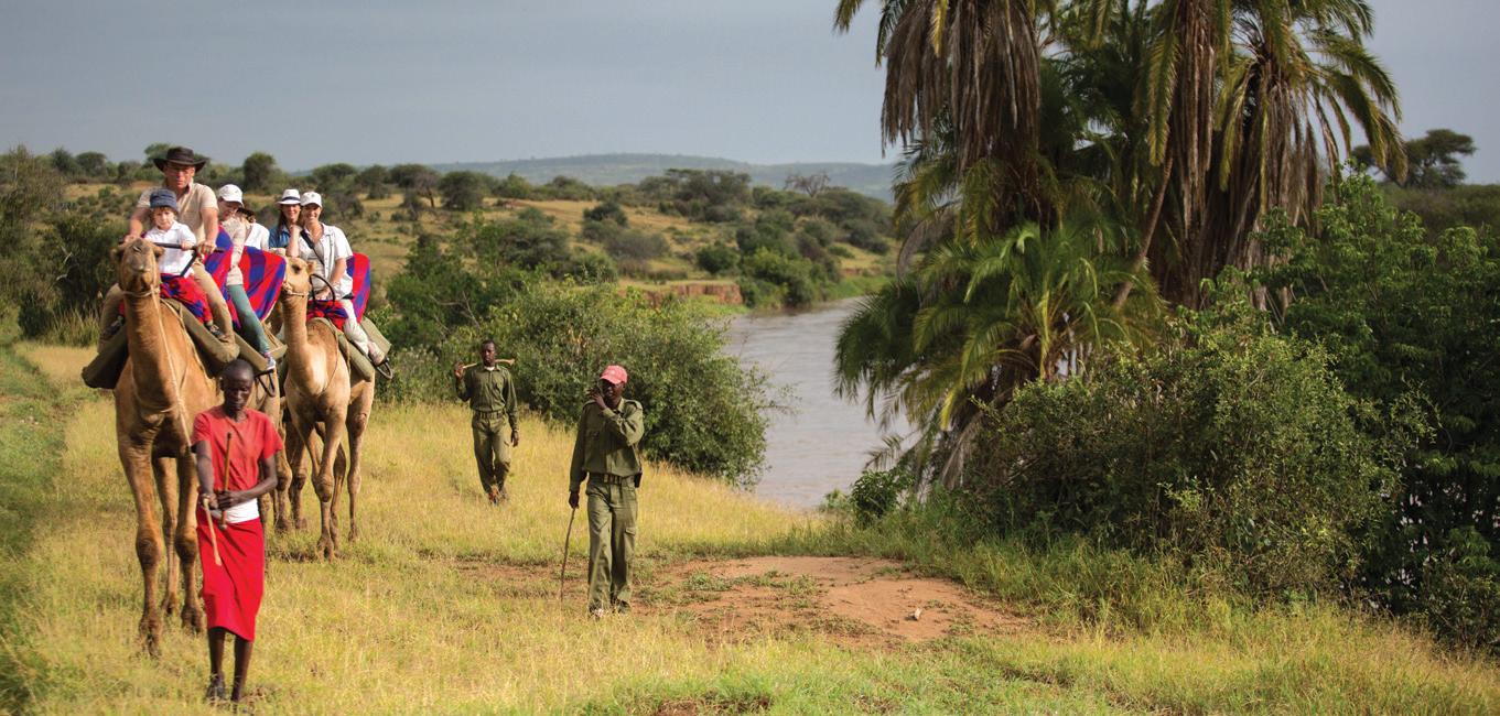 For a novel experience, why not try a camel ride? Lewa Safari Camp’s dromedary trio are led through the savannah by Samburu handlers as the evening draws in for a picturesque, though somewhat bobbling, experience.