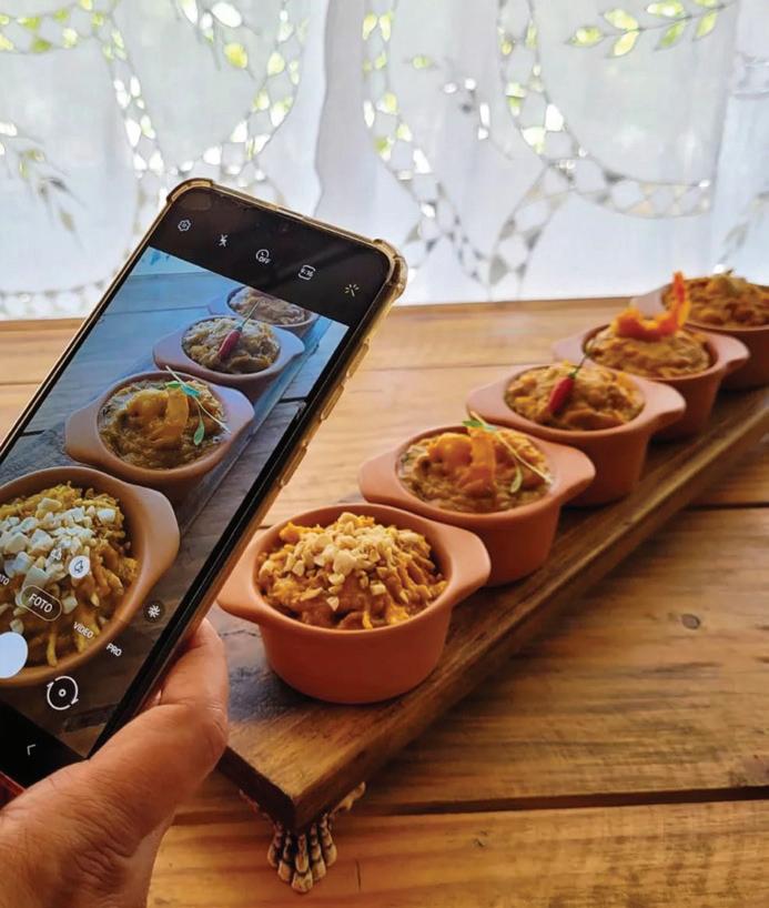 Clockwise: Maní restaurant; Bahia coastline; Vatapá tasting paddle at Dona Mariquita, Bahia; Eclectic street eats at Calçadão Urbanoide.