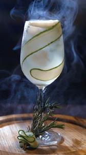 Pick from a curated selection of some 40 different gins at the Manzaru poolside bar at Anantara Kihavah Maldives Villas, including Isle of Harris sugar kelp infused gin and their Cucumber-Basil Fizz (pictured) made with London Dry Gin, Thai basil, cucumber water, lemon, honey and soda.