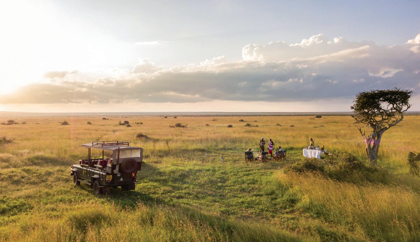 Being on safari in the Serengeti is a once-ina-lifetime adventure (that many repeat!). Experiencing it by air is literally taking the adventure to another level. Ballooning is an almost soundless experience, other than the enticing roar of the jets which keep you at optimum height. Any wind will push you along at the same pace, so you neither feel it nor hear it. It’s possible to sail along, drone-like, over vast swathes of The Great Migration in the morning, then take a game drive and see those same animals cross the Mara River later the same day.