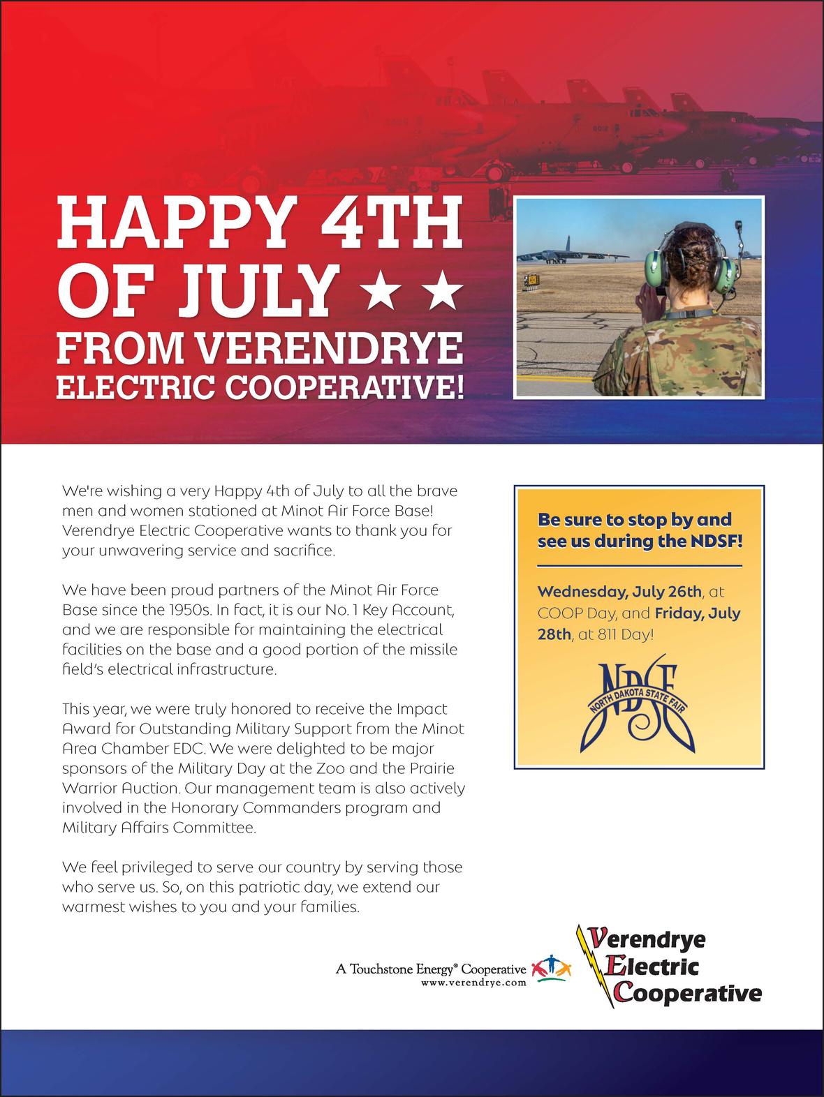 2 Thank you to our great partners at Minot Parks for providing yard games, bouncy houses, free admission to the Roosevelt Park Zoo all day and free skating at Maysa Arena and to our presenting sponsors Verendrye Electric Cooperative and Northrop Grumman Corporation