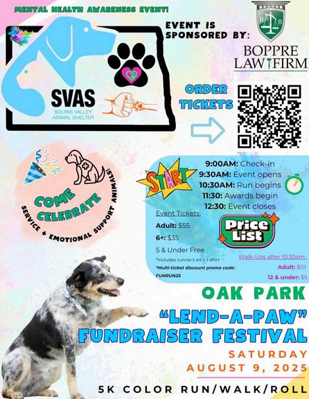 The morning kicks off at 9:30 a m with a lively vendor festival where guests can browse local booths, connect with mental health resources, and meet fellow pet lovers Then, at 10:30 a m , participants will take off for a 5K Color Run or a 1-Mile Walk/Jog/Roll, all in the spirit of movement, inclusion, and awareness The awards ceremony will wrap up the day from 11:30 a.m. to 12:00 p.m., with the vendor festival closing at 12:30 p.m. This year’s event continues the fun tradition of a peer-to-peer fundraising challenge. Last year’s top fundraiser and beloved canine celebrity Lyle from Lyle’s Adventures will return as our 2025 “spokes dog.” But the friendly competition is on: whoever raises the most this year will earn the title of 2026 spokes dog!
