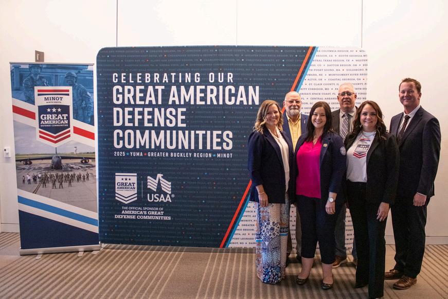 The afternoon general session opened with the video highlighting Minot as a Great American Defense Community which can be seen here Following the video was a panel moderated by USAA Sr VP, John Richardson, IV that featured Brekka representing Minot, the Mayor of Monterey, and individuals from the two other communities that were recognized in 2025, which include Buckley Space Force Base in Aurora, CO and Marine Corps Air Station in Yuma, AZ. h dove into What It Takes to Be Great: Leading Great American Defense Communities, a rship conversation. The evening featured a al reception that recognized and celebrated the communities that won and created an rtunity to continue discussions and share esses