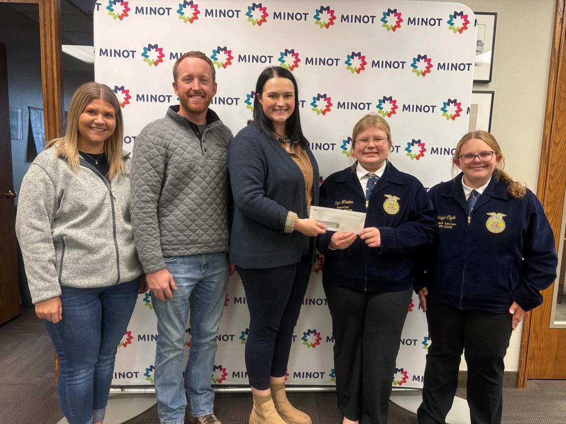 This event wouldn’t be possible without the many volunteers who raised money, planned, prepared and set up the event. Local students also helped make it happen. Three FFA chapters provided a helping hand; Max, South Prairie and Velva and the Agribusiness Committee presented them with a donation as a thank you