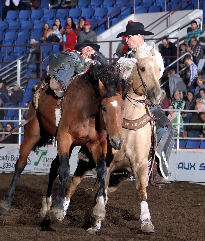 The pickup men will be Ryan Hanna, Berthold, N D and Troy Crowser, Mud Butte, S D This is Hanna’s fourth time at the Badlands Circuit. For Crowser, it’s his first time as contract personnel. Before Crowser was selected to work the circuit finals, he rode at it, as a saddle bronc rider, from 2011 to 2017. He retired from riding broncs in 2018. Almost immediately he began picking up, starting with some of Rorey Lemmel’s buck outs, and then getting hired to work rodeos. When he was riding saddle broncs, Crowser would raise, train and sell a horse, with the proceeds going towards his rodeo entry fees. Now he keeps the majority of his horses, riding them to pick up. “That part is really enjoyable,” he said, “to have some good ones around.” He has about thirty brood mares, selling weanlings and performance horses. Working as a pickup man keeps Crowser involved in the sport. “I love rodeo, for one thing,” he said. “I enjoy that you get to showcase your horses and how good they are in the arena This way, I can still rodeo but stay at one (location) for several days, and stay closer to home ”