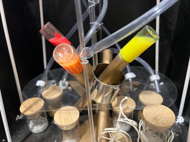 Finally positioning four different colors of small LED bulbs in different locations, four colors correspond to four different ingredients, red, blue and green indicate the location of the furniture represented on each floor.