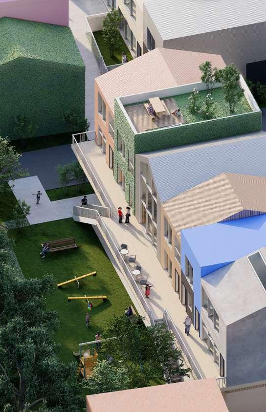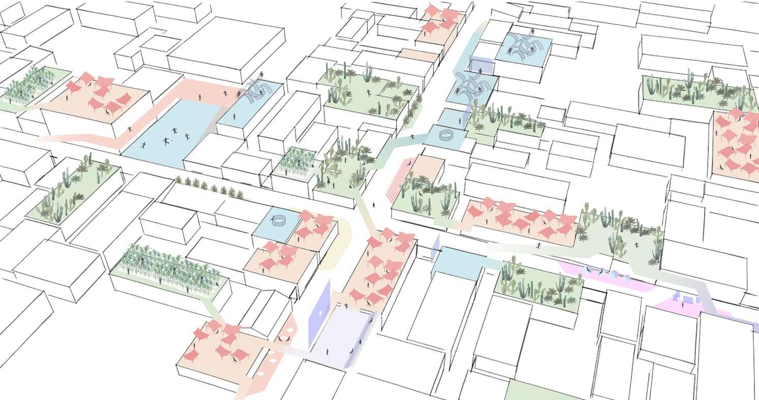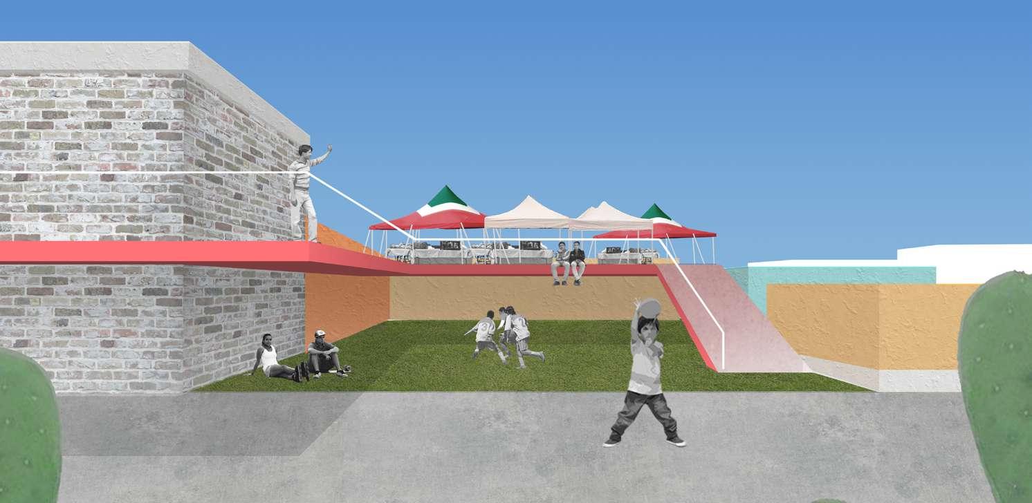 In Tlapanal á municipality, Puebla, Mexico, 93 percent of surveyed children have at least one family member in the United States, with 33 percent having one or both parents residing there. Our design focuses on fostering the community connection of Tlapanal á and promotes the relationships that can be made in public spaces. These connections between the left-behind children and community members can offer emotional support and guidance to compensate for the absence of their parents. By connecting rooftops and activating rooftop spaces, we have created a new, diverse, and multifunctional public space. This eliminates the necessity for children to play in remote ruins or narrow streets. Instead, they can now engage with other children and community members on the rooftops, fostering a safer and more active environment.