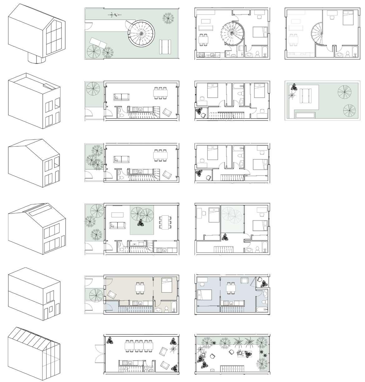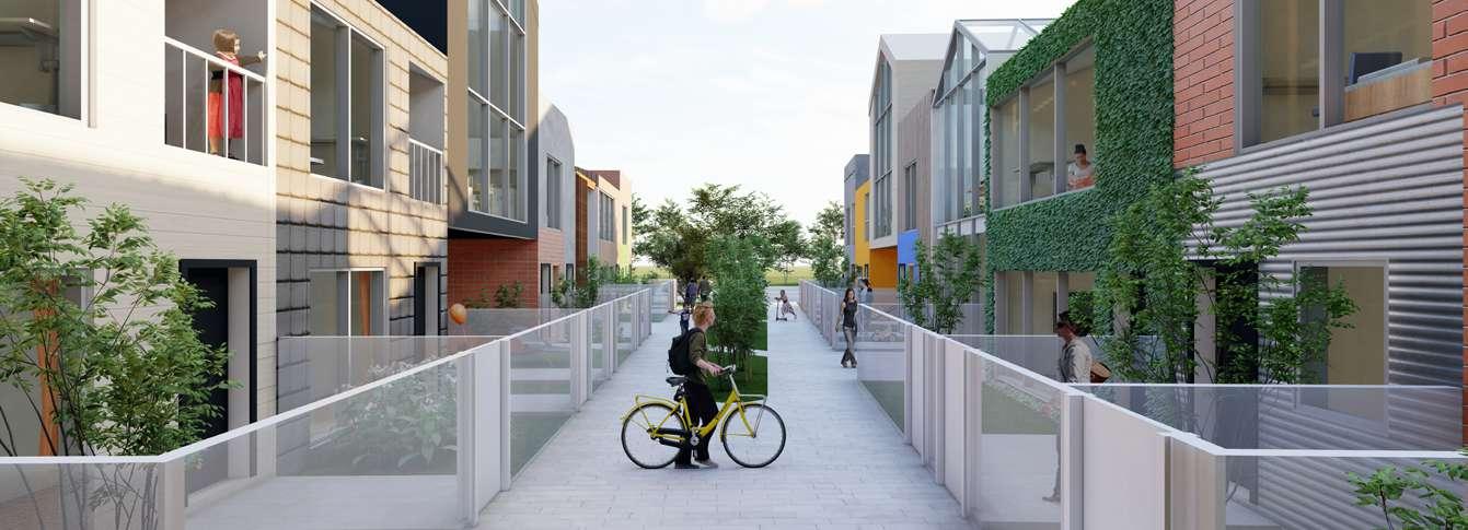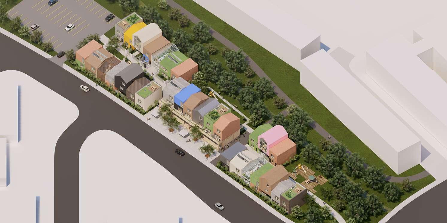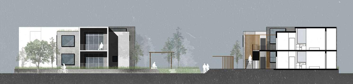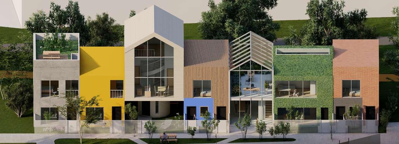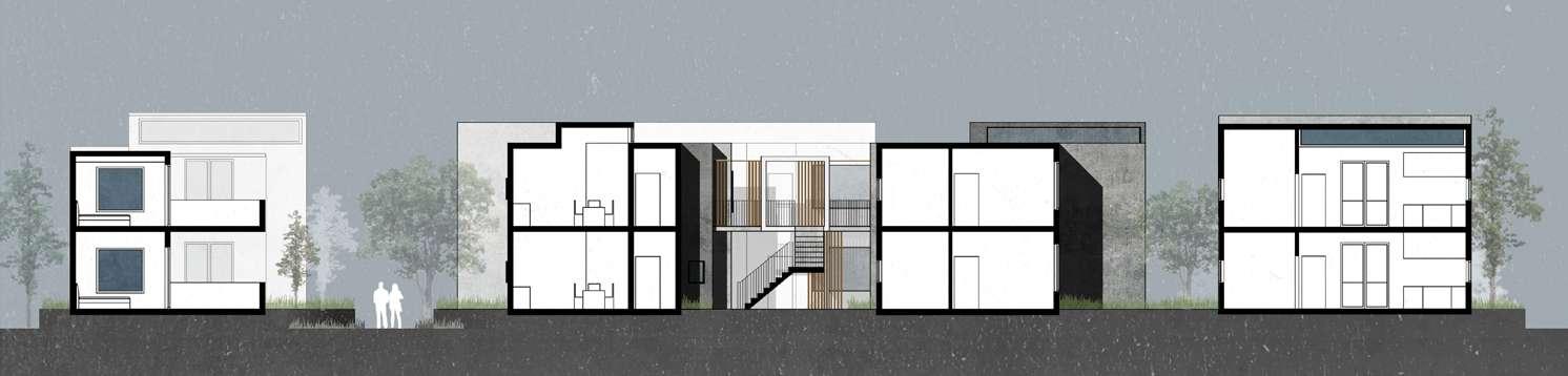 My design goal is to transform traditional social housing into a more diverse, sustainable, and interesting community by combining affordability, individuality, and diversity. Situated in Moscow near the U of I campus and the main street, this project comprises five terraces arranged in three rows, providing 35 new homes and a commercial space.