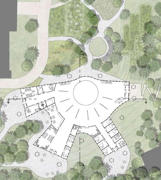 Our design for the new Native Student Center will support the regrowth of native culture throughout Moscow, by providing essential academic and social services. These services will encourage a healthy and productive academic experience for native students who are away from their homes. The building is physically rooted within the hillside and spatially rooted within the campus culture, strengthening the relationship between the University of Idaho and the native cultures within the MOU memorandum and beyond.