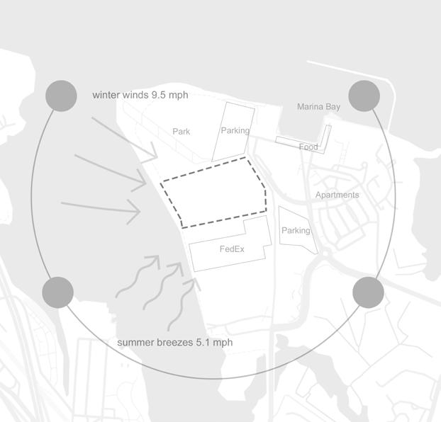 The project site is south of Boston, Massachusetts in the city of Quincy. The abandoned airport runway on-site is retained as a pedestrianfriendly public event space, which connects the existing park to the entire community. The housing units are organized on the west side of the site to take advantage of the views of the park and Quincy Bay.