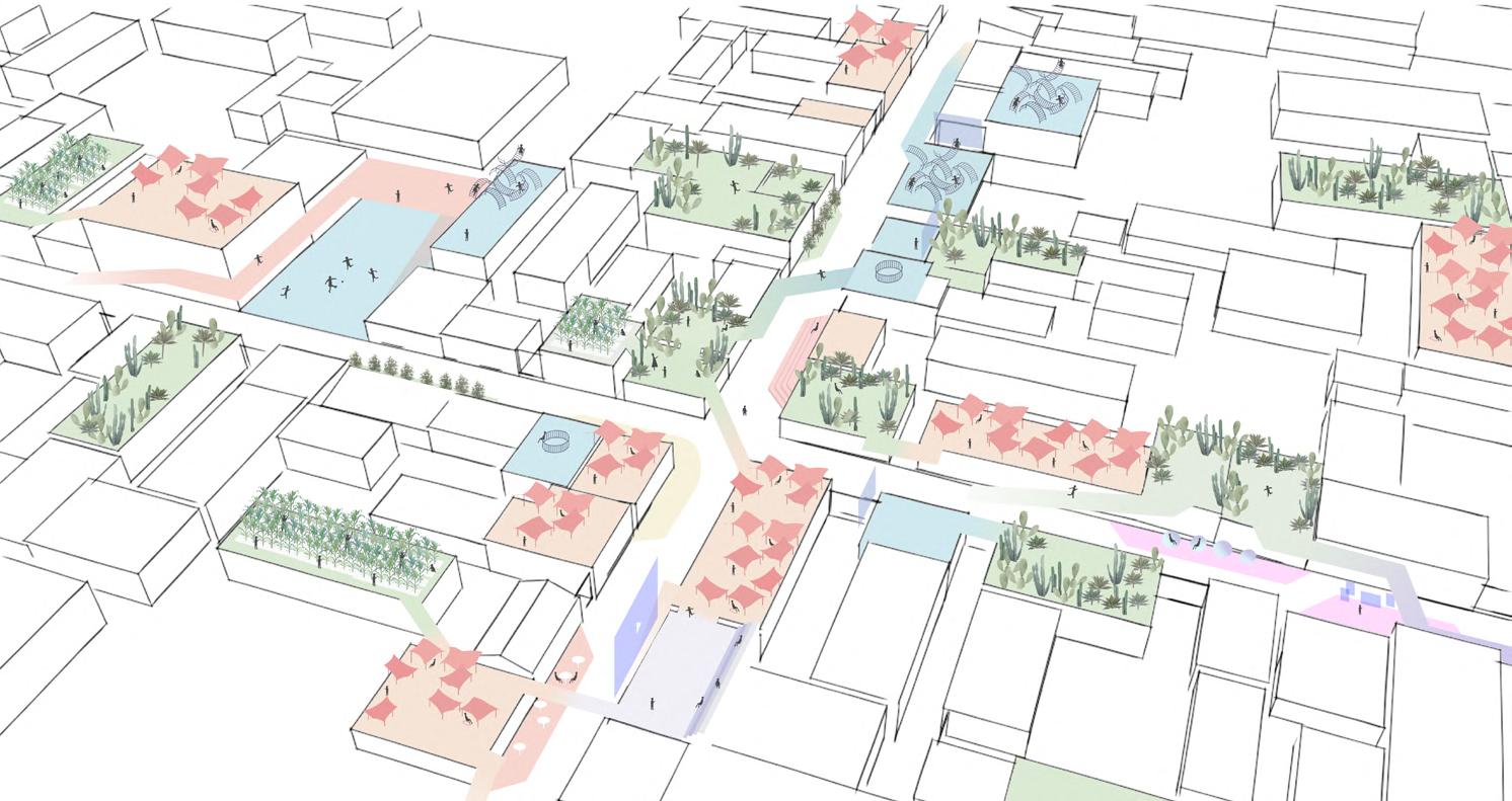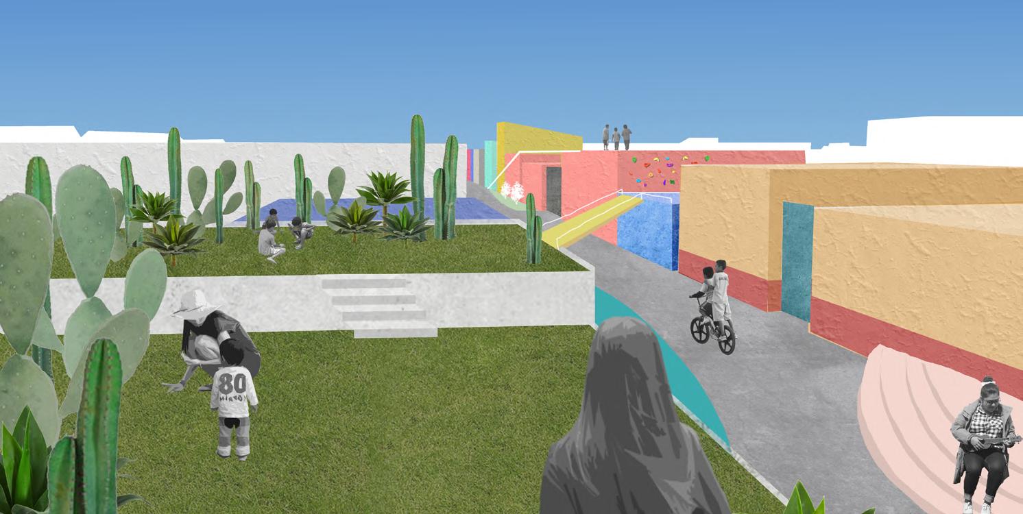 In Tlapanal á municipality, Puebla, Mexico, 93 percent of surveyed children have at least one family member in the United States, with 33 percent having one or both parents residing there. Our design focuses on fostering the community connection of Tlapanal á and promotes the relationships that can be made in public spaces. These connections between the left-behind children and community members can offer emotional support and guidance to compensate for the absence of their parents. By connecting rooftops and activating rooftop spaces, we have created a new, diverse, and multifunctional public space. This eliminates the necessity for children to play in remote ruins or narrow streets. Instead, they can now engage with other children and community members on the rooftops, fostering a safer and more active environment.
