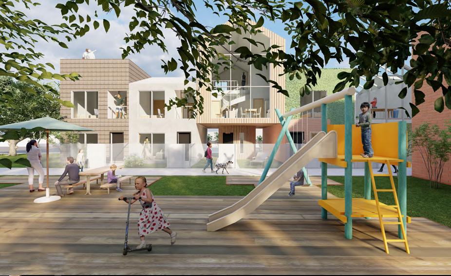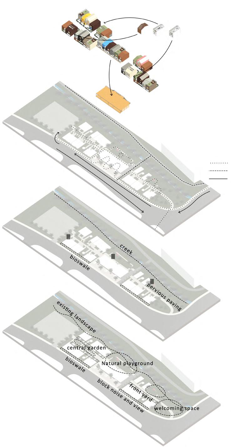 My design focuses on providing affordable and comfortable housing units for people living in high-density areas near the big city of Boston. People can choose to be alone in a quiet and private space, away from the hustle and bustle of the city, or they can choose to participate in their community at any time. The community provides people with a wide variety of social spaces, while housing units are designed to encourage interaction between people and nature.