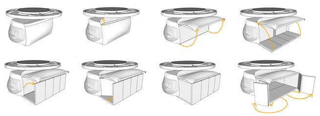 When disaster strikes, private living pods detach and