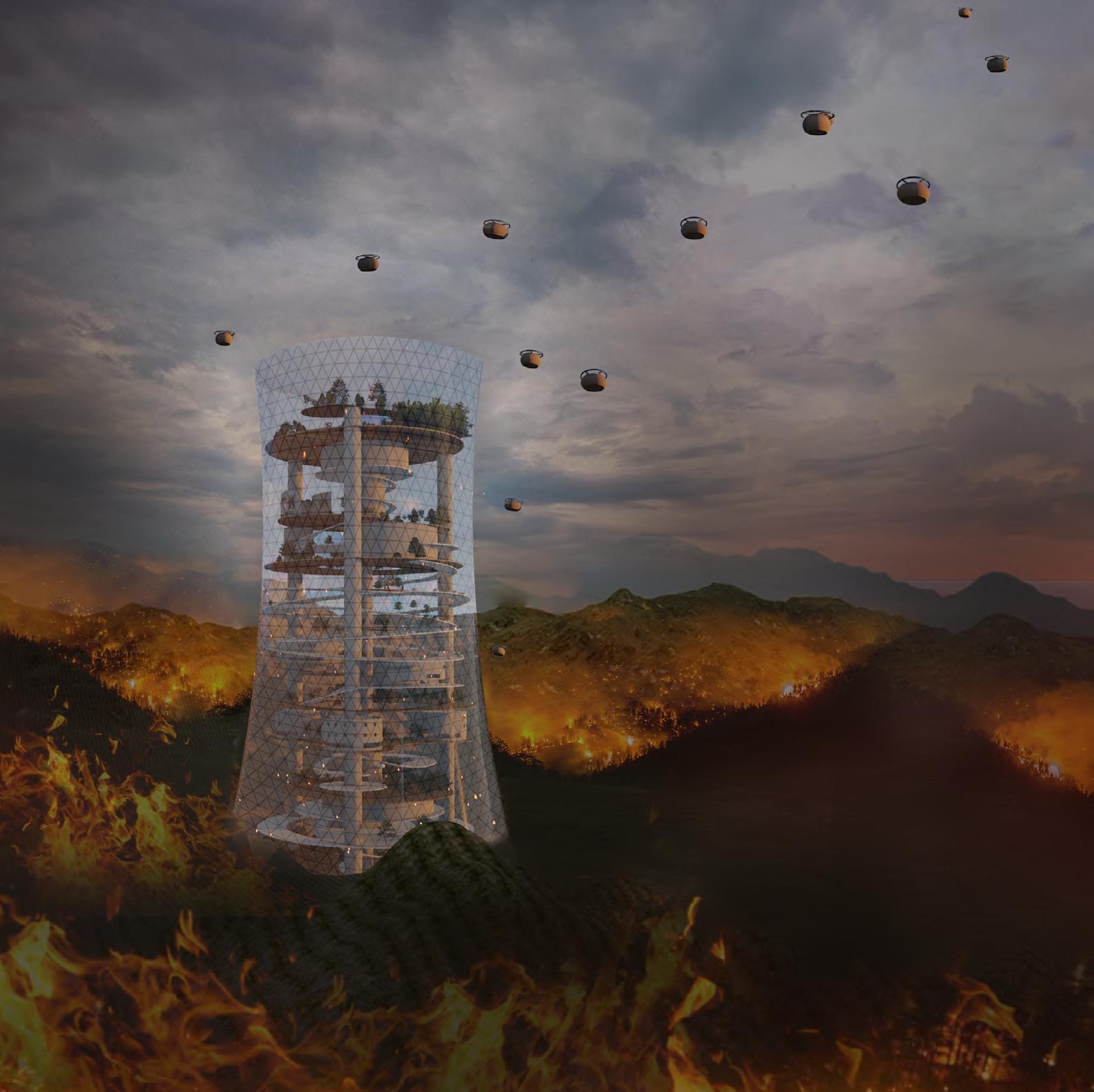 "Warming of the climate system is unequivocal, and since the 1950s, many of the observed changes are unprecedented over decades to millennia" (IPCC). With no limits to human CO2 emissions, garbage production, and nonrenewable resource consumption, humans have rendered the earth nearly uninhabitable. Heightened natural disasters are ravaging the land, and cities around the world are being destroyed. Massive tsunamis, uncontrollable fires, devastating hurricanes, and shattering earthquakes become a consequence no one can escape. With permanent residence no longer a viable option, humans seek refuge in temporary habitats as their sole means of survival.