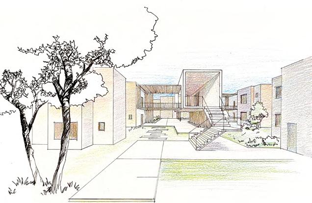 roof rainwater collected by eave gutters, the water will then be used to irrigate the surrounding landscape and community gardens Landscape