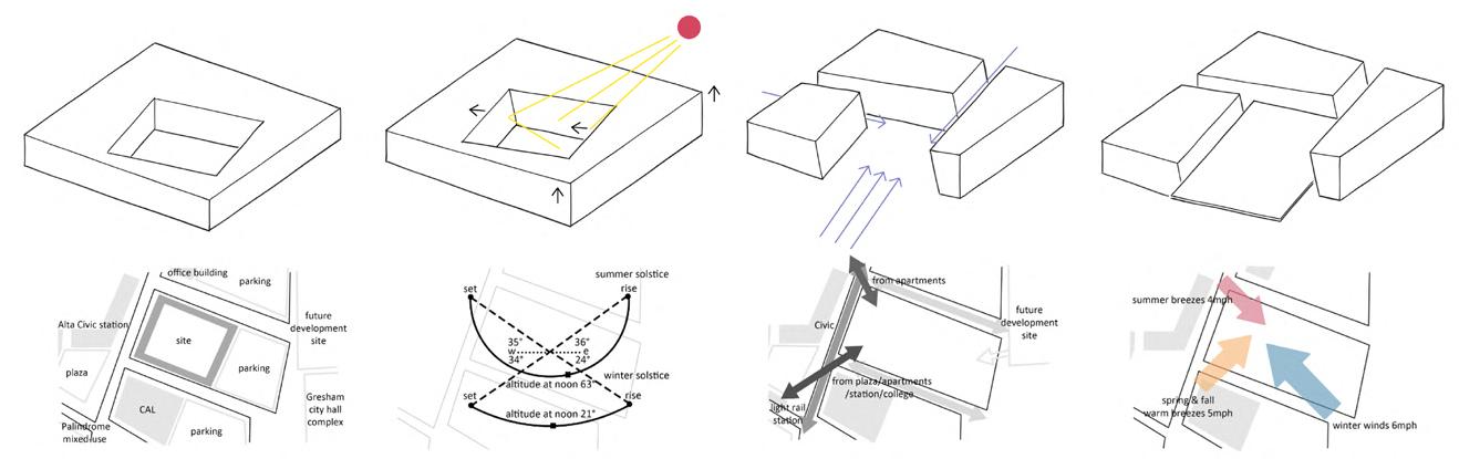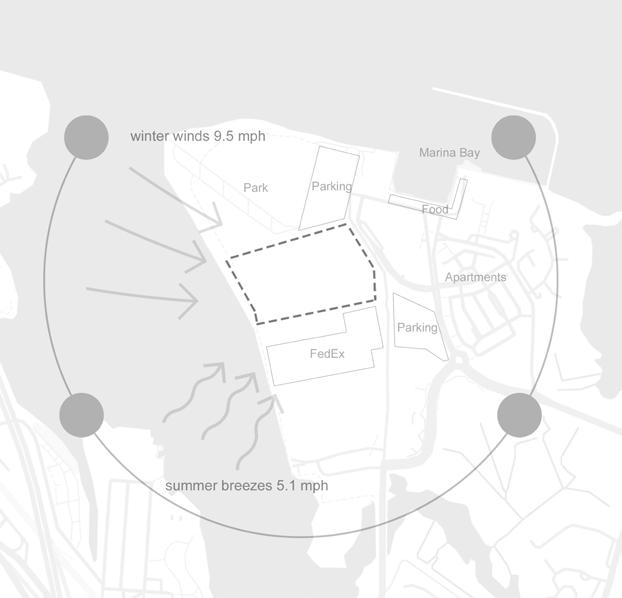 The project site is south of Boston, Massachusetts in the city of Quincy. The abandoned airport runway on-site is retained as a pedestrianfriendly public event space, which connects the existing park to the entire community. The housing units are organized on the west side of the site to take advantage of the views of the park and Quincy Bay.