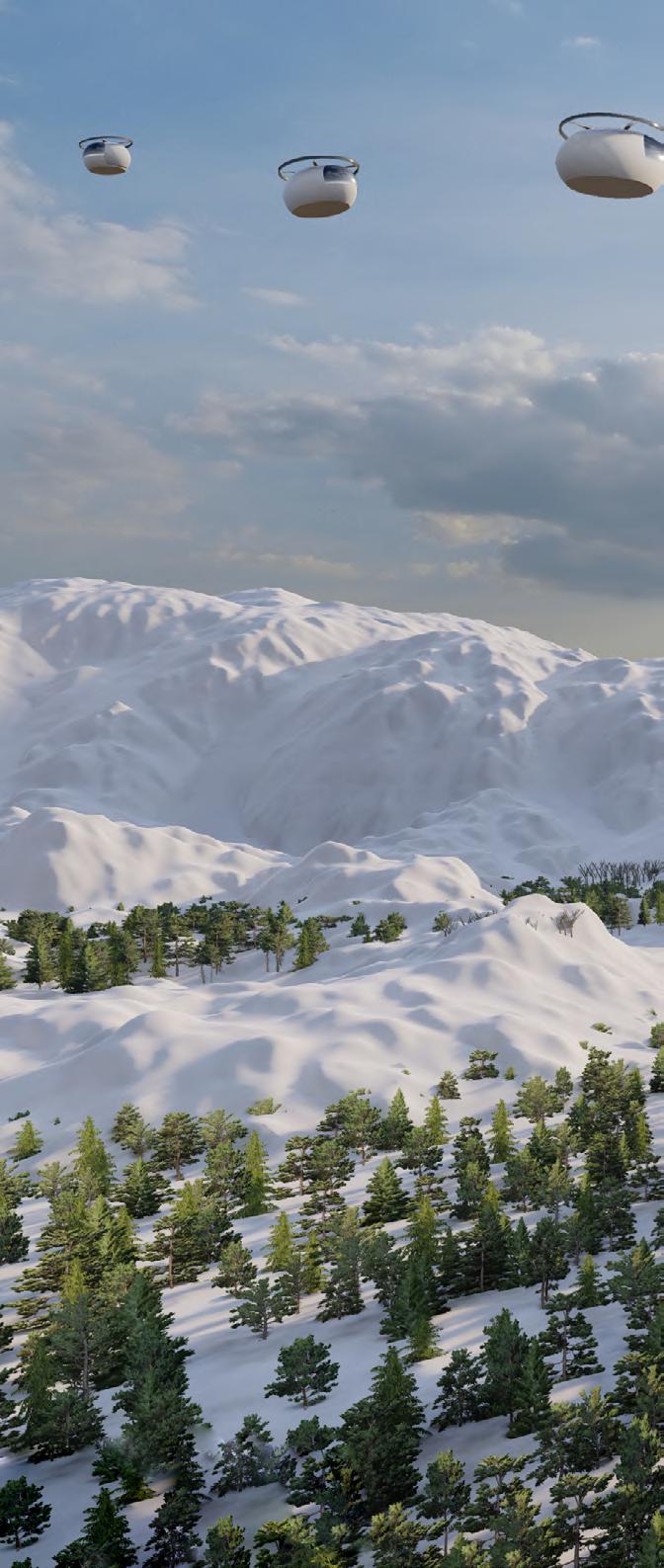 Each private living pod offers a 'home' that cannot be destroyed. In emergencies, these pods can disconnect and independently fly to the next safe haven before landing on designated pads within the skyscraper. These detachable pods provide their users with a sense of comfort through permanence and familiarity in a relentlessly changing world.