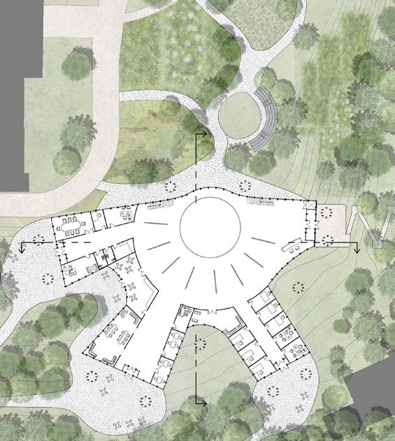 Our design for the new Native Student Center will support the regrowth of native culture throughout Moscow, by providing essential academic and social services. These services will encourage a healthy and productive academic experience for native students who are away from their homes. The building is physically rooted within the hillside and spatially rooted within the campus culture, strengthening the relationship between the University of Idaho and the native cultures within the MOU memorandum and beyond.