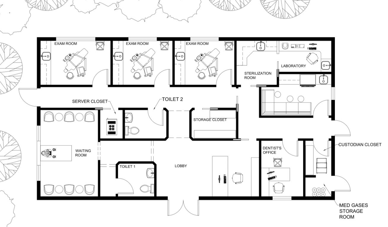 The objective of this project is to design the interior of a new construction building purchased by "Lake Lanier Family Dental Care" to provide a welcoming, functional, and attractive space for patients and staff. The design will also ensure that the requirement of different rooms is met and that the restrooms are designed in compliance with ADA regulations. The goal is to deliver an interior design that meets the client's expectations and ensures a positive experience for everyone.