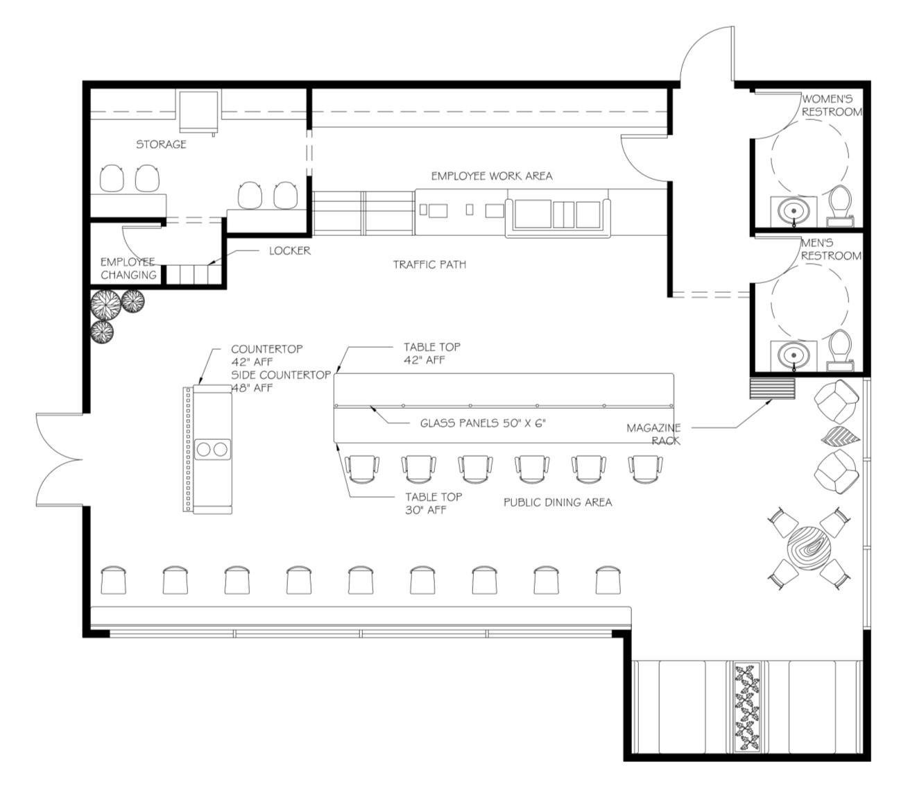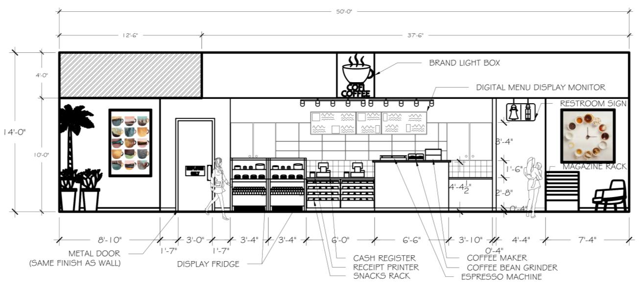 Coffee Shop | AutoCAD | Coffee Shop (Revision) | AutoCAD + SketchUp