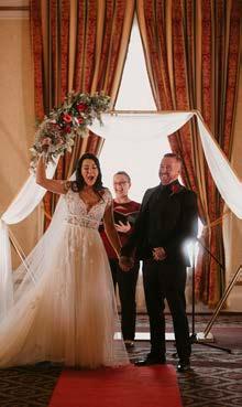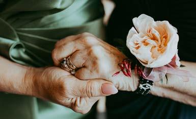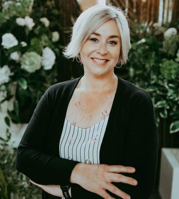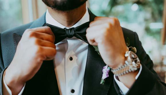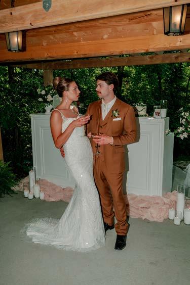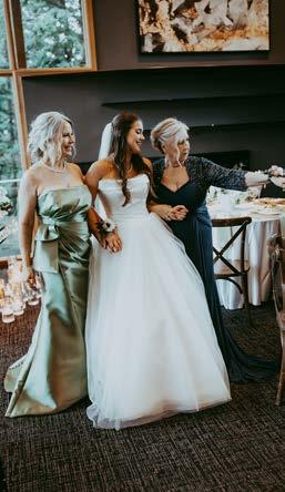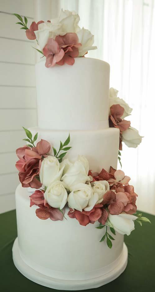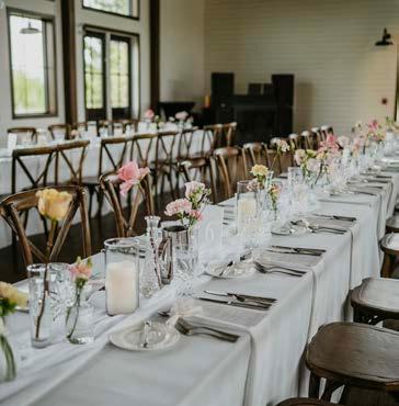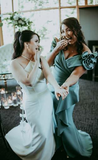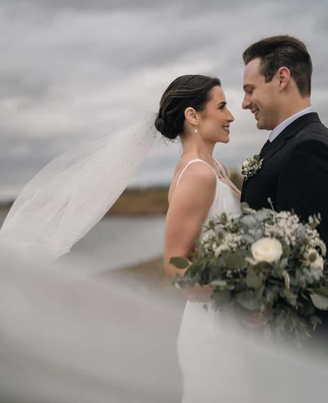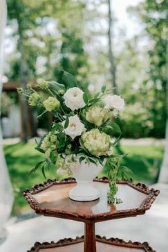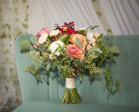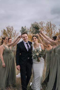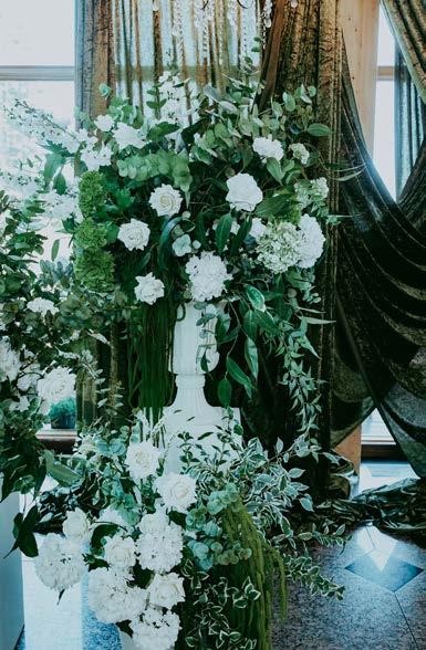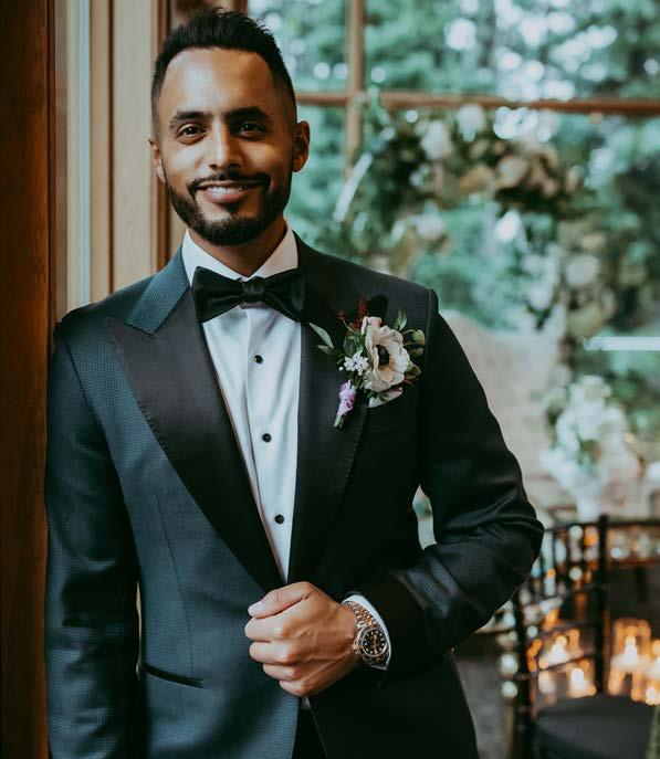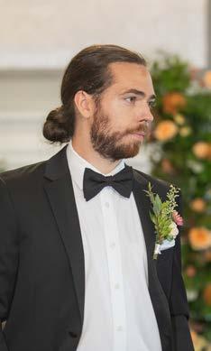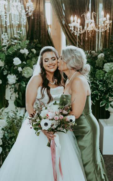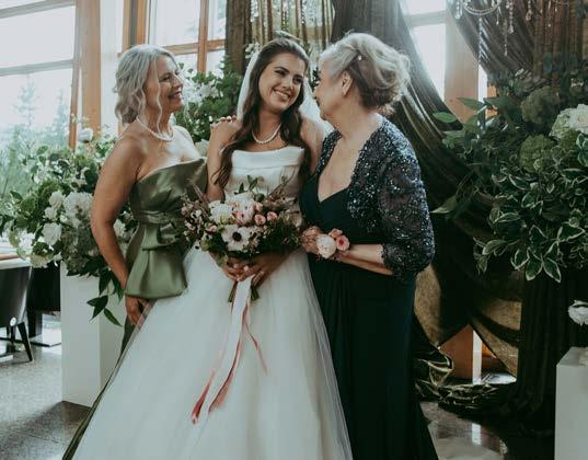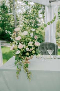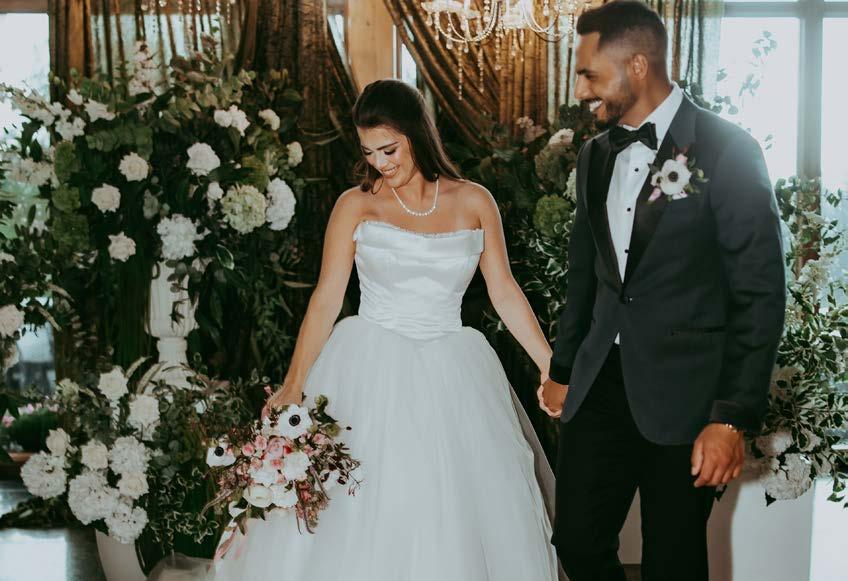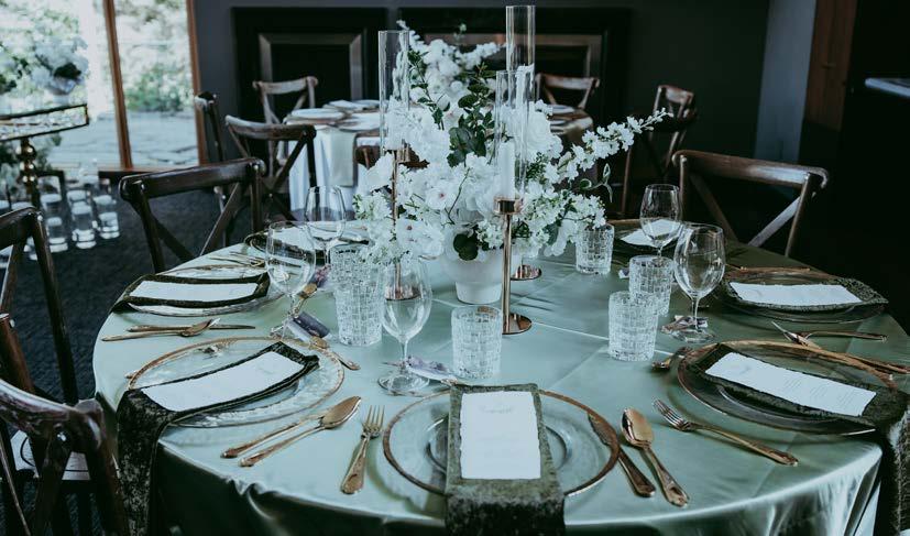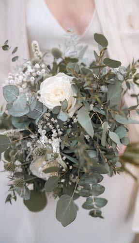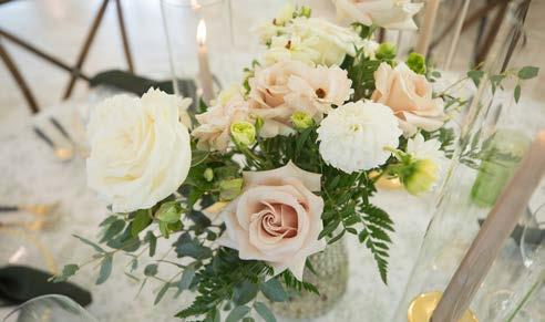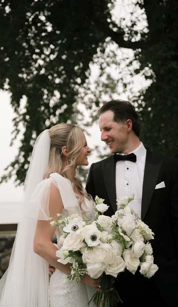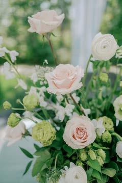 Flowers by Natasha brought intimacy to the bridal bouquet, wrist corsages, and boutonnières were designed to feel soft, timeless, and organic. The result was a reflection of both the venue’s natural surroundings and the modern bride’s understated elegance. The floral selection balanced trending blooms with gardeninspired classics. Feature flowers such as Anemone, Curcuma, and blush Dahlia were paired with mauve spray roses, Hellebores, Astrantia, and Yarrow, creating arrangements that felt curated yet effortless.
