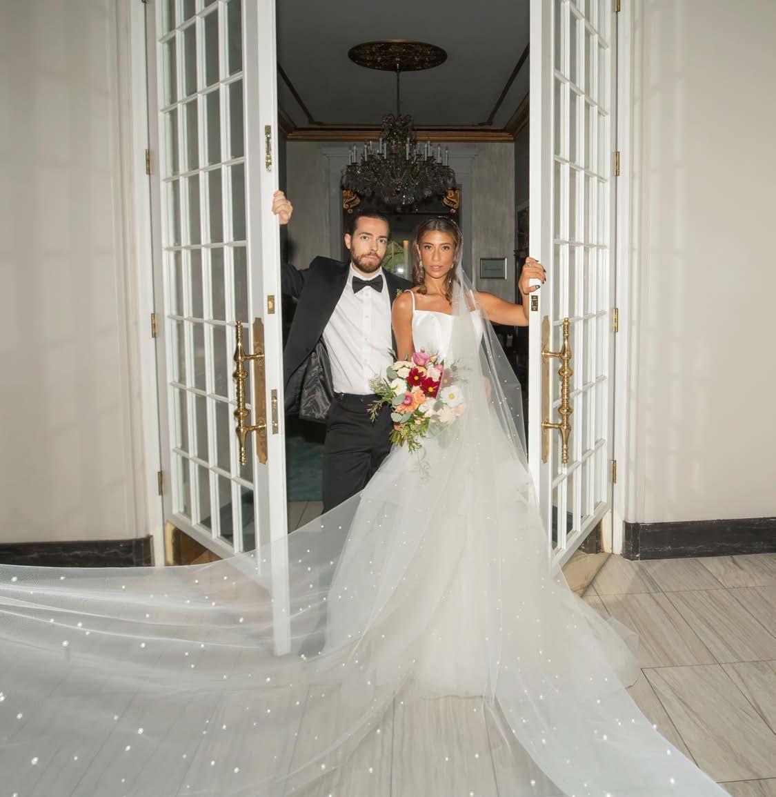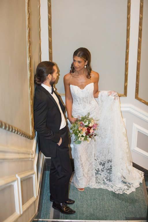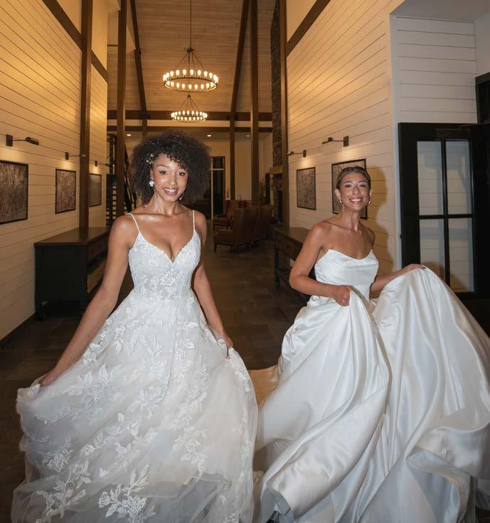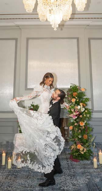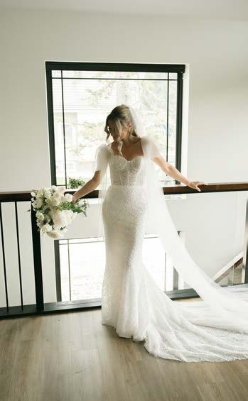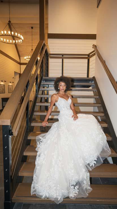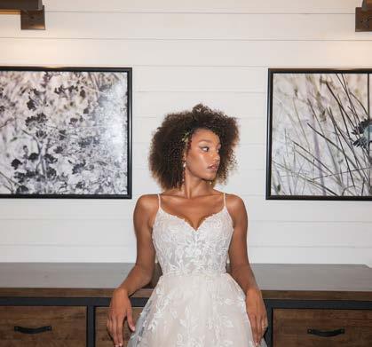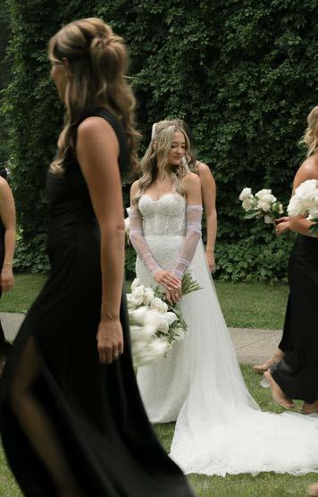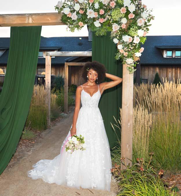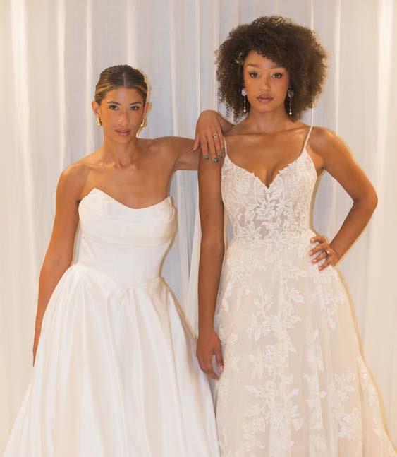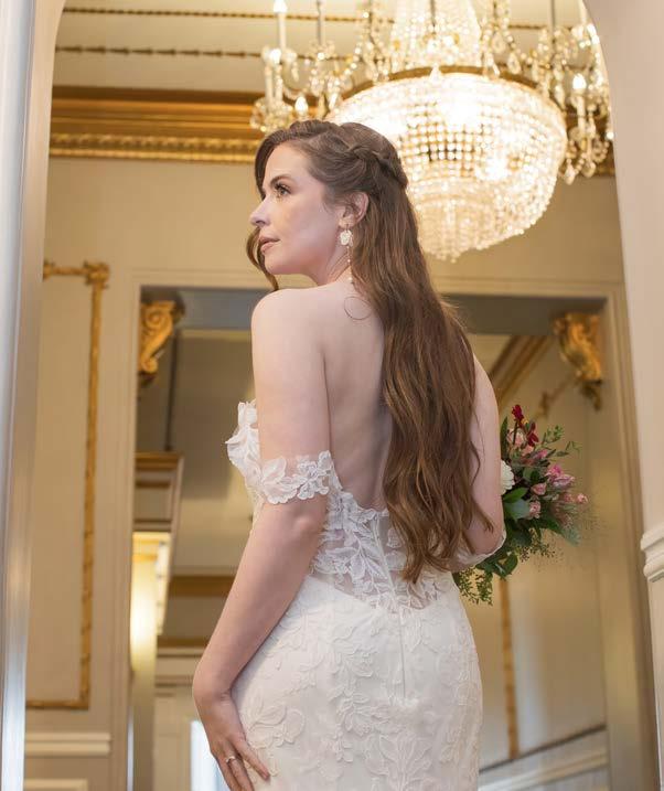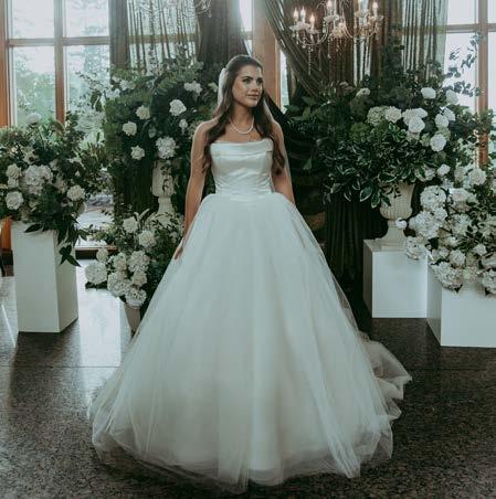 Among the standout pieces was Hepburn, a Casa Blanca wedding gown that pays homage to the enchantment of Old Hollywood glamour. This breathtaking tulle ball gown, with its softly scooped neckline and pearlencrusted lapel, captures both nostalgia and modern sophistication. The satin bodice, defined by an eyecatching basque waistline, evokes vintage opulence, while the artful lapel folds and intricate pearl beading add a touch of couture artistry.