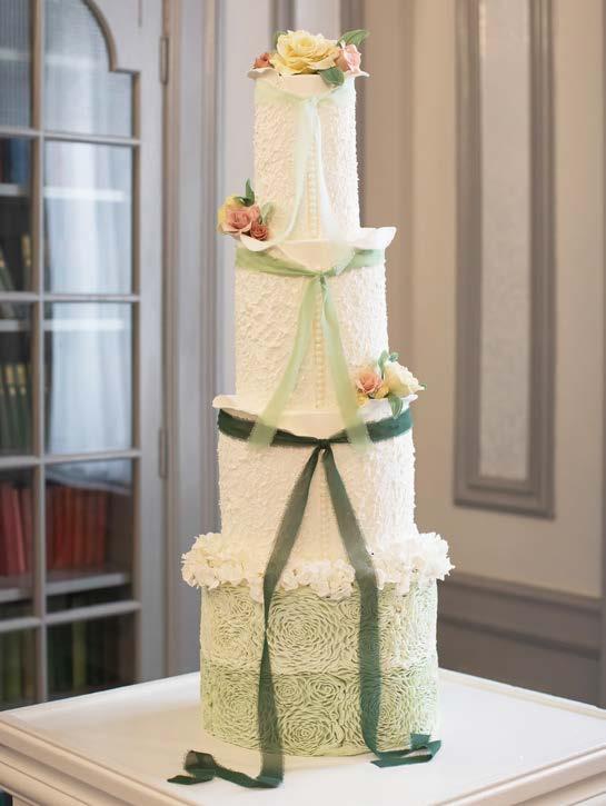 The cake, designed by Pretty Sweet Cakes, echoed this same intentional simplicity. With rough-textured tiers and soft detailing, it embodied quiet sophistication.