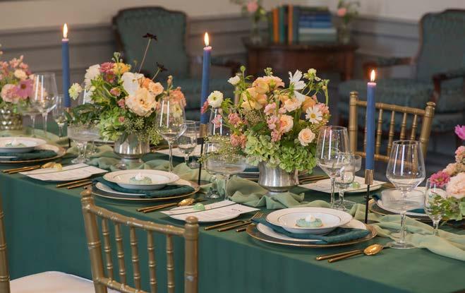 The palette reflected early autumn’s quiet luxury: deep greens, muted pinks, soft mauves, and warm golds, layered with candlelight and natural texture. The goal was to blur the line between indoors and out, allowing Azuridge’s serenity to flow seamlessly into every styled vignette.