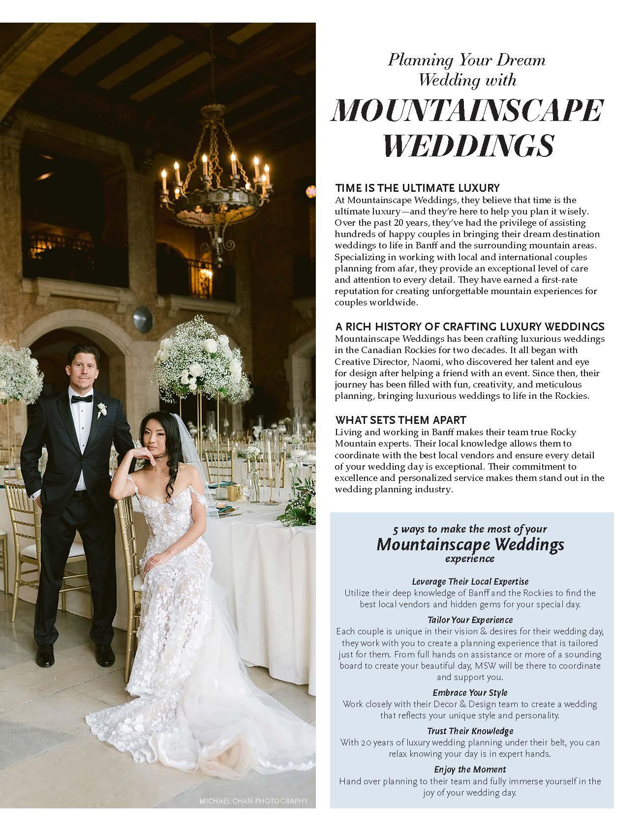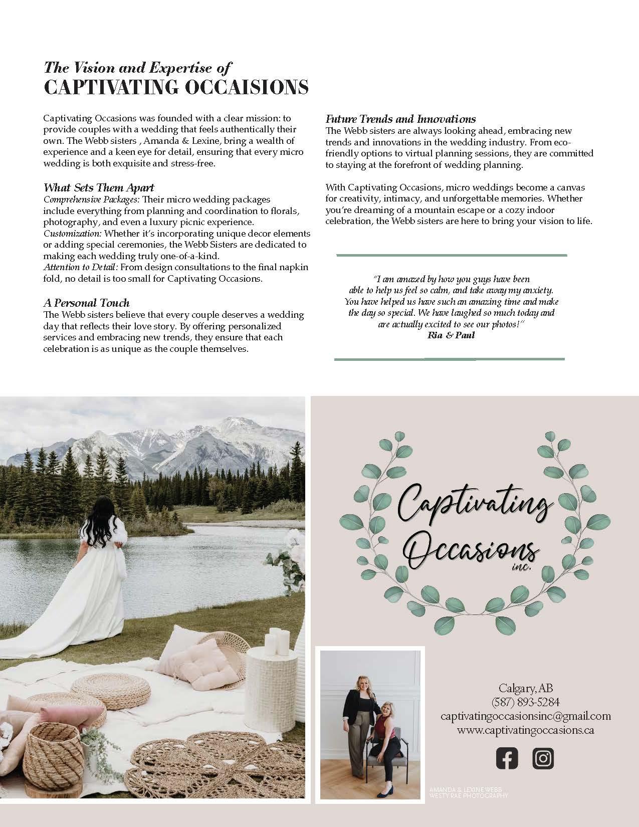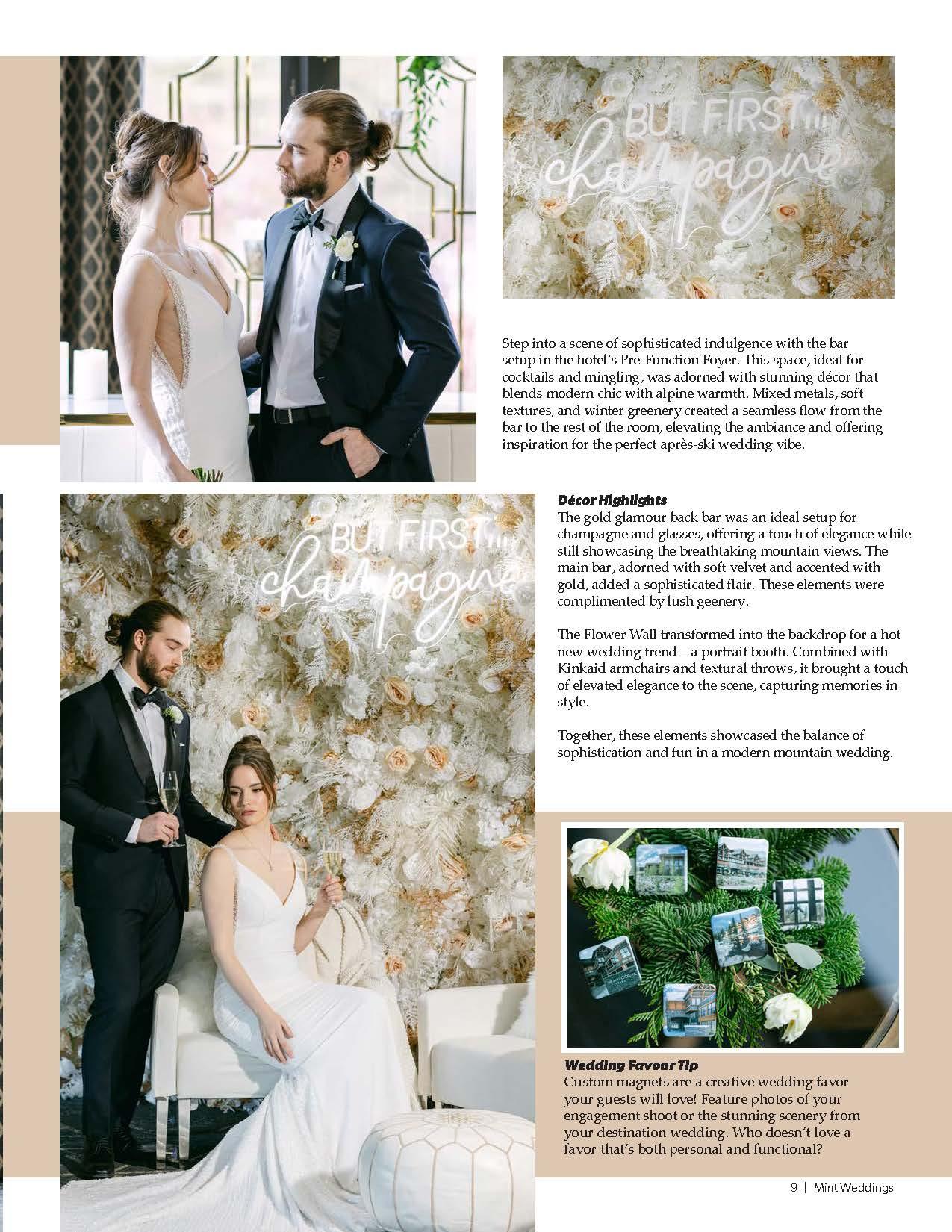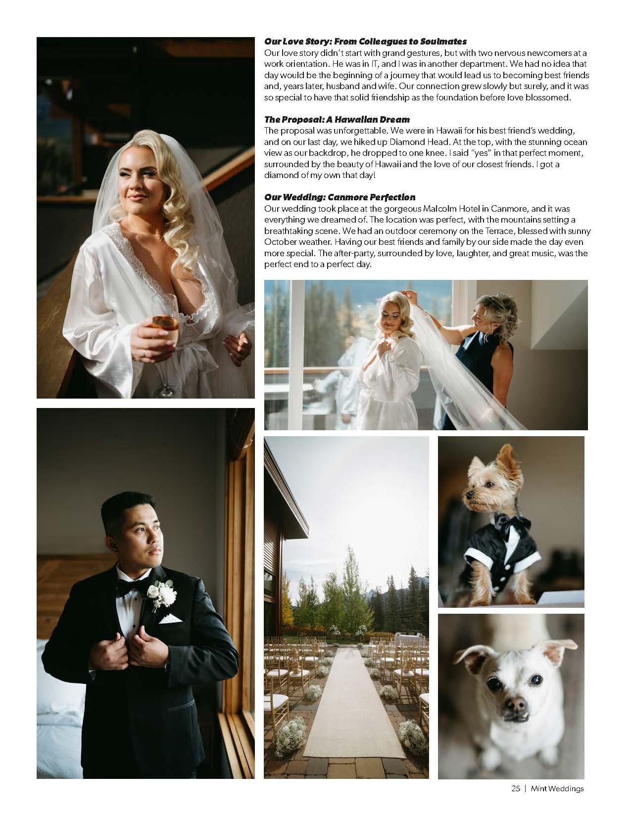 Explore Alberta weddings photographed in epic mountain settings with a cover photo and editorial from The Malcolm in Canmore. Featuring intimate elopements, styled shoots, and vendor spotlights across Banff, Canmore and Jasper, this issue highlights local wedding vendors, planning tips, and creative inspiration for couples seeking a mountain celebration. Ideal for brides, grooms, photographers and planners looking for Rocky Mountain wedding ideas and vendor connections.