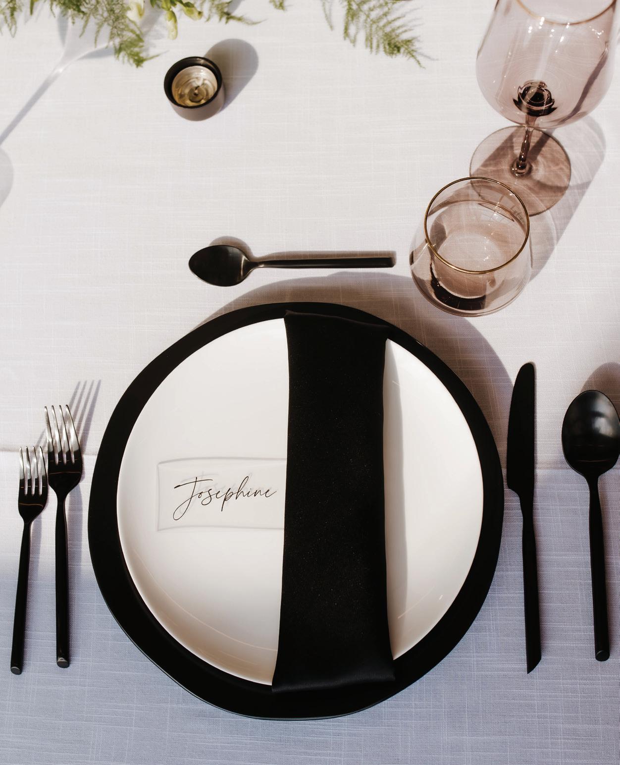 Embracing the lush surroundings and playing with dark and white contrasts on the tablescape resulted in pure magic.