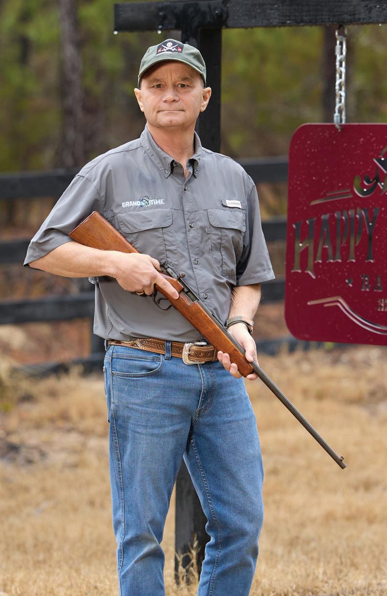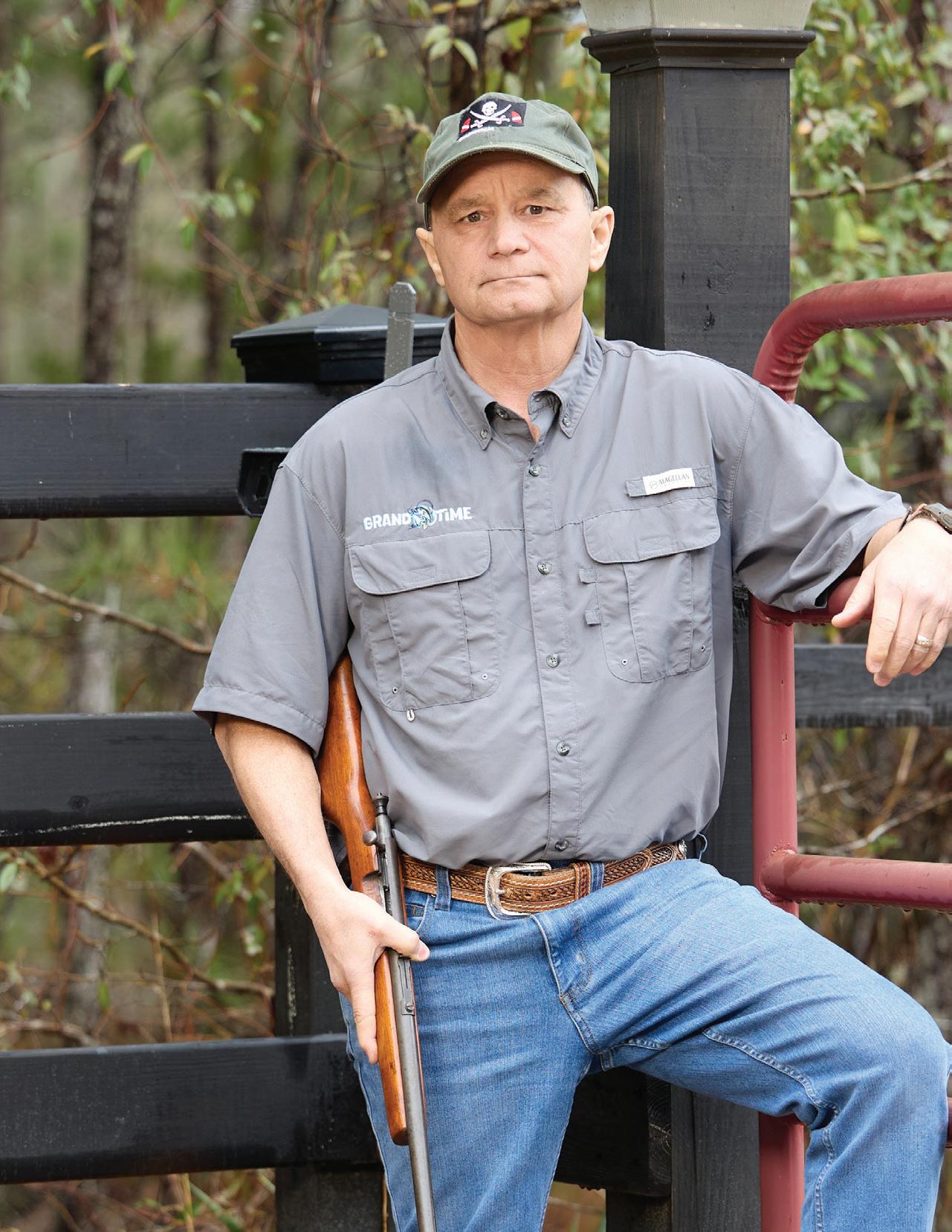 Wayne Brown, a successful businessman and current owner of Aggressor Adventures tour company, holds an FN PS90 5.7 at his 45-acre Georgia farm, named Happy Valley Ranch, where he shares his love of guns, hunting and nature with his grandkids. (WAYNE BROWN)