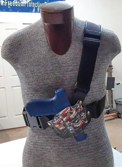 a good pocket for holding round balls. The pouch is supported by a 1¼-inchwide shoulder strap with a brass buckle that makes the strap adjustable from 50 to 61 inches. And that buckle is placed on the shooter’s backside when the pouch is worn, so they ask if you are right- or left-handed when the pouch is ordered.