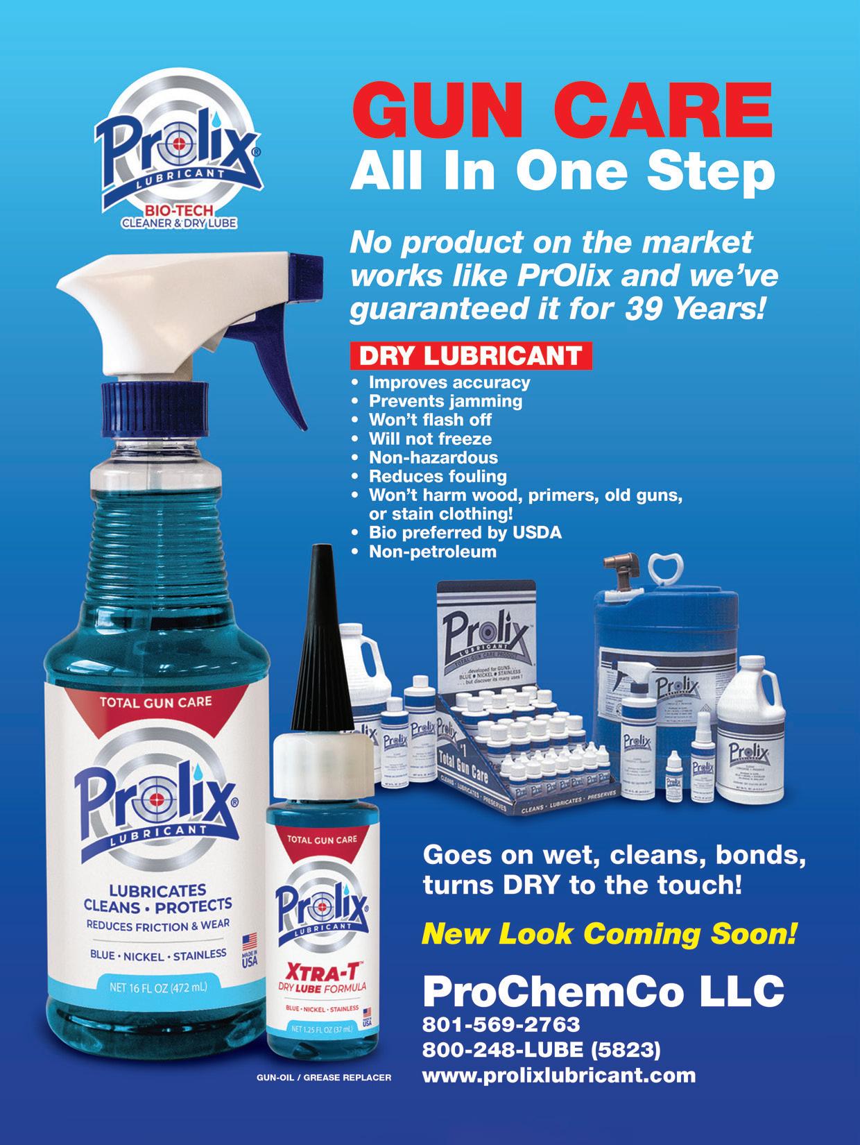 To complement the PrOlix Cleaner/Lubricant (Dry Tech) line, shooters can use the equally superior “gun-oil and grease replacer” PrOlix Xtra-T Lube for a total care product.