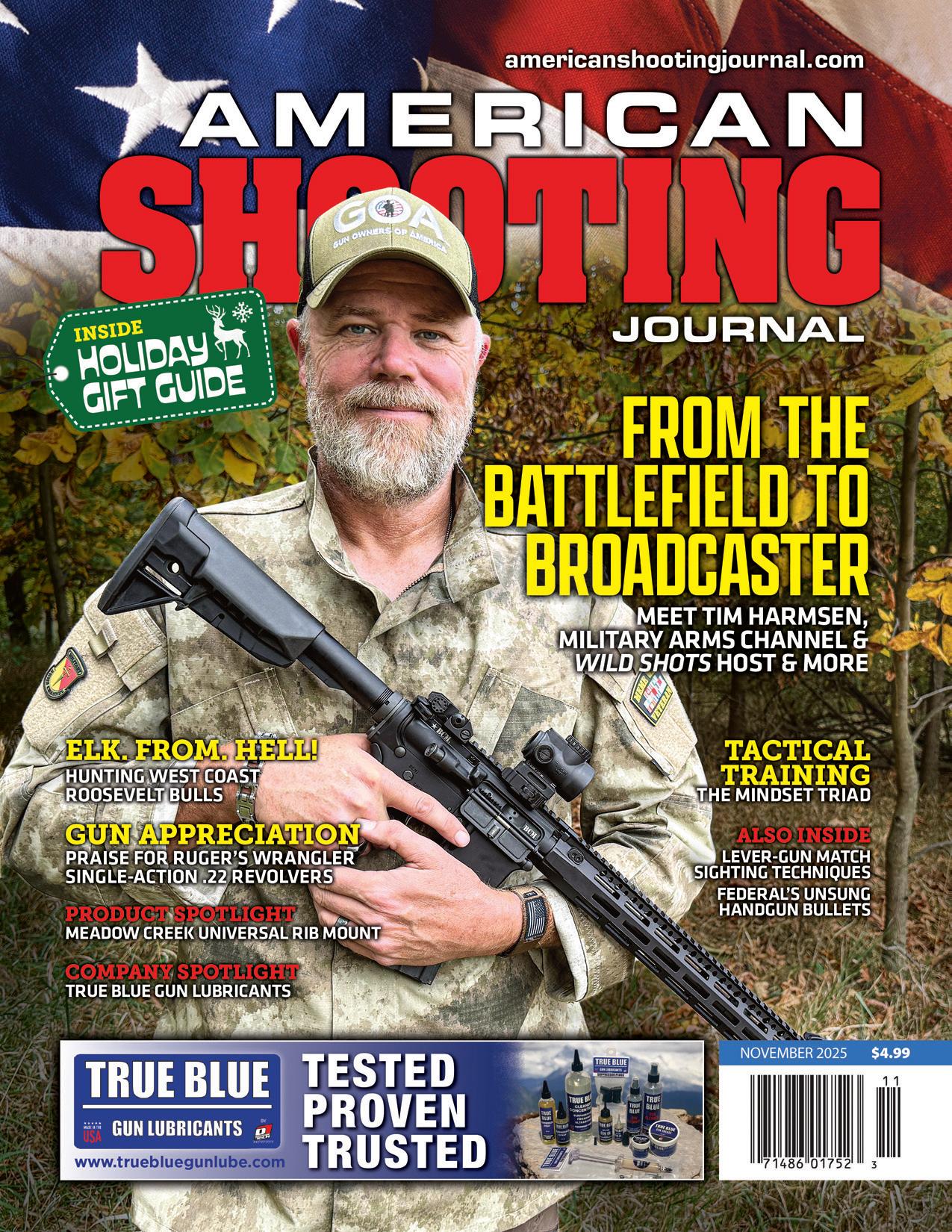 Most recently, Harmsen co-created and is the host of Wild Shots, a new firearms- and marksmanshipfocused TV series from American Stories Entertainment network and broadcast on the Pursuit Channel’s Freedom Friday lineup. On the show, Harmsen takes a 30-day journey across the Eastern US, visiting historic battlefields and legendary ranges, all while pairing historic firearms with modern gear.