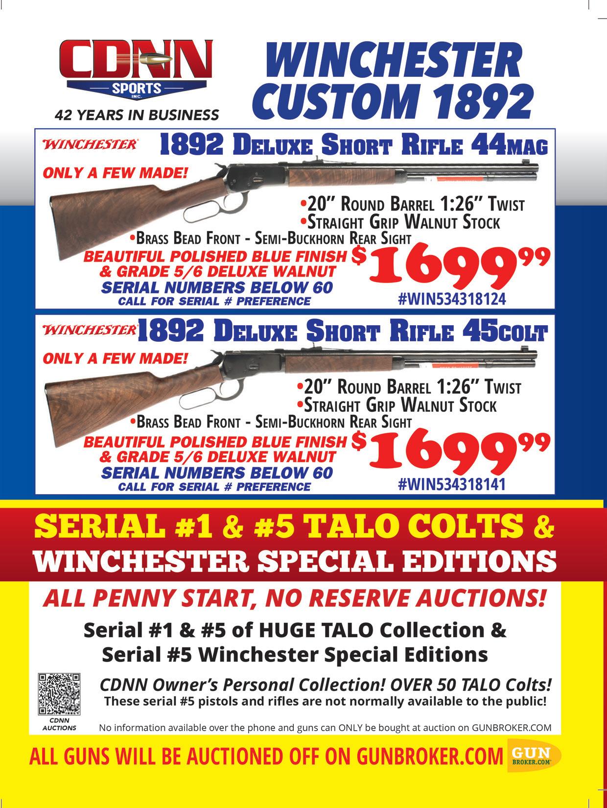 Three ’73s were used in the match, from a 30-inch-barreled model (top) to one with a 16-inch tube.