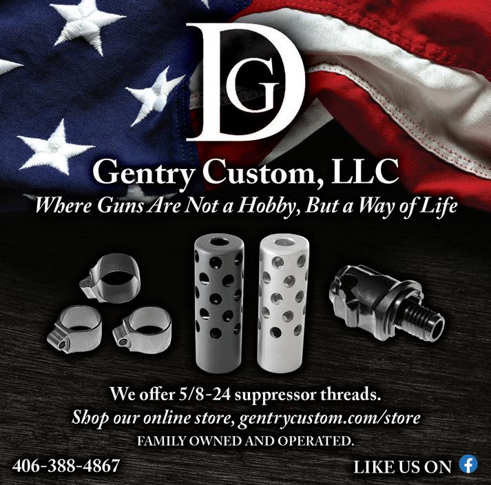 A family-owned business, Gentry Custom’s motto is “Where guns are not a hobby, but a way of life.” They believe in gun ownership and gun safety. Gentry Custom is known for the Quiet Muzzle Brake, which will make for a user-friendly rifle. The Quiet Muzzle Brake reduces recoil and muzzle jump so you can get that second shot off if needed, without the large increase of noise to the shooter. Many of the factory rifles have been threaded for a muzzle brake. Gentry Custom offers 5/8 x24 threads and many others. Call them today and they can provide the proper Quiet Muzzle Brake for your rifle. Gentry Custom also offers a threeposition safety for the Remington family of rifles and the Mauser 98.
