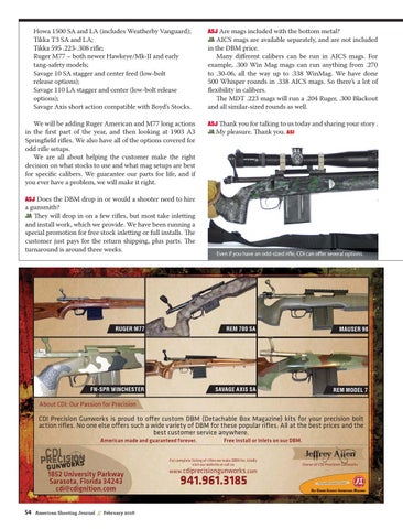 Jeffrey A llen For complete listing of rifles we make DBM for, kindly visit our website or call us