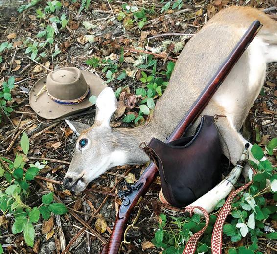 The doe that Moran dropped with one shot from his .54-caliber Tennessee Valley Muzzleloading flintlock (both below) soon yielded a meal of venison heart and liver with onions (this image) for he and his hunting partner, as well as a hide that Moran stretched (right) for tanning. that was good enough; it has yet to be replaced with a better model.”
