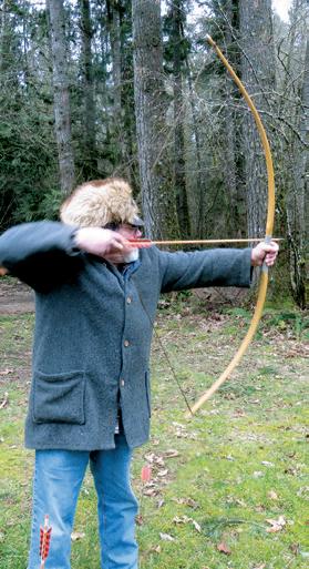 Bob DeLisle on the archery course. On the pistol trail, Nesbitt aims his .50 at a tough target.