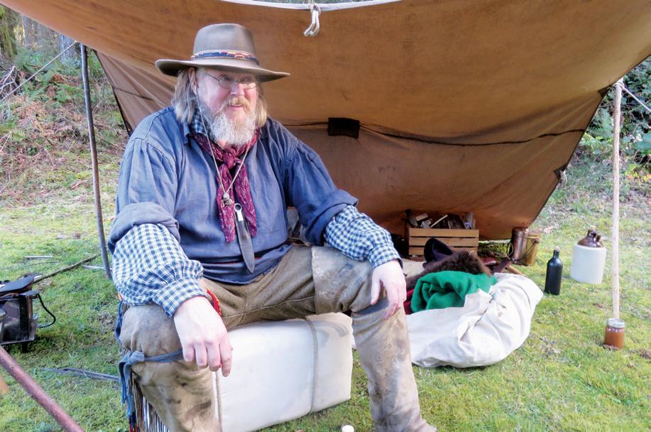 competition too, and one of the awards was for the best primitive camp. A “primitive camp” included only what would have been available during the pre-1840 period, from the time of the rendezvous era of the mountain men. That means no camp chairs, Coleman stoves, sleeping bags or any modern conveniences. Other nonshooting events included the Dutch oven cooking competition and an apple pie event to see who could make the best “apple pie,” which in this case was a powerful beverage and not a pie at all.