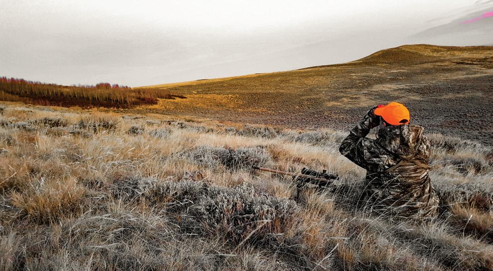 technique as well. Whatever you do, you don’t want to start looking through a high-magnification scope and then begin glassing for the animal you were looking at a moment ago. Chances are he will be gone before you find him.