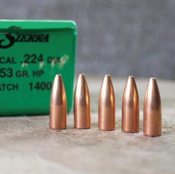 Not all match bullets have a boattail; the author has long relied on the Sierra 53-grain MatchKing for pinpoint accuracy from his .22-250 Remington.