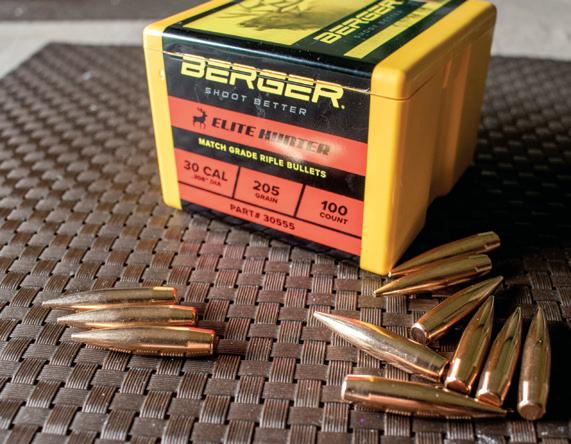 Berger’s Elite Hunter line offers match-grade performance from a hunting bullet; their BC values are derived from a sleek ogive and a beefy boattail. good number of bullets like the Swift Scirocco II, Nosler AccuBond, Federal Trophy Bonded Tip and Terminal Ascent, Hornady InterBond, and Norma’s BondStrike. All of these have an excellent reputation among hunters.