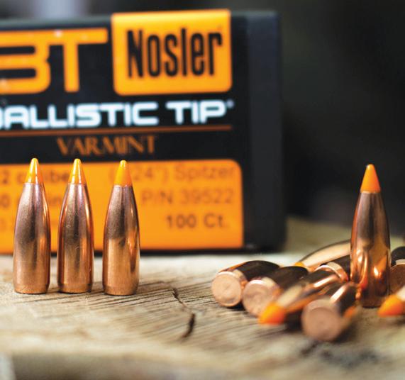 The famed Nosler Ballistic Tip Varmint, shown here in .22-caliber 50-grain variety, with a slight boattail angle. The author has used this bullet out to 450 yards to absolutely flatten predators and varmints.