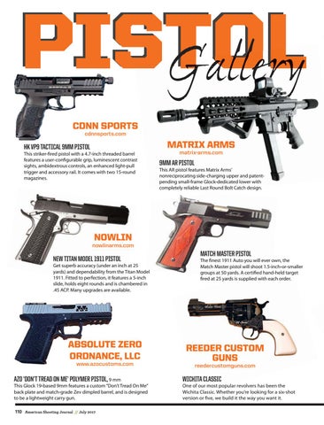 AZO ‘DON’T TREAD ON ME’ POLYMER PISTOL, 9 mm This Glock 19-based 9mm features a custom “Don’t Tread On Me” back plate and match-grade Zev dimpled barrel, and is designed to be a lightweight carry gun. 110