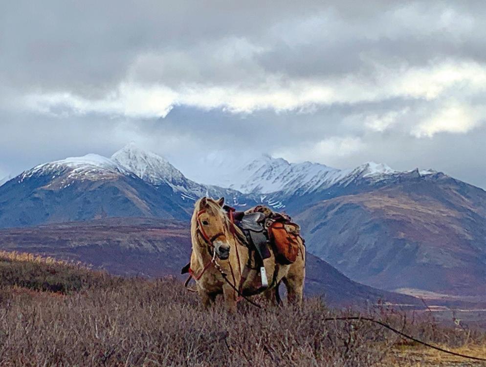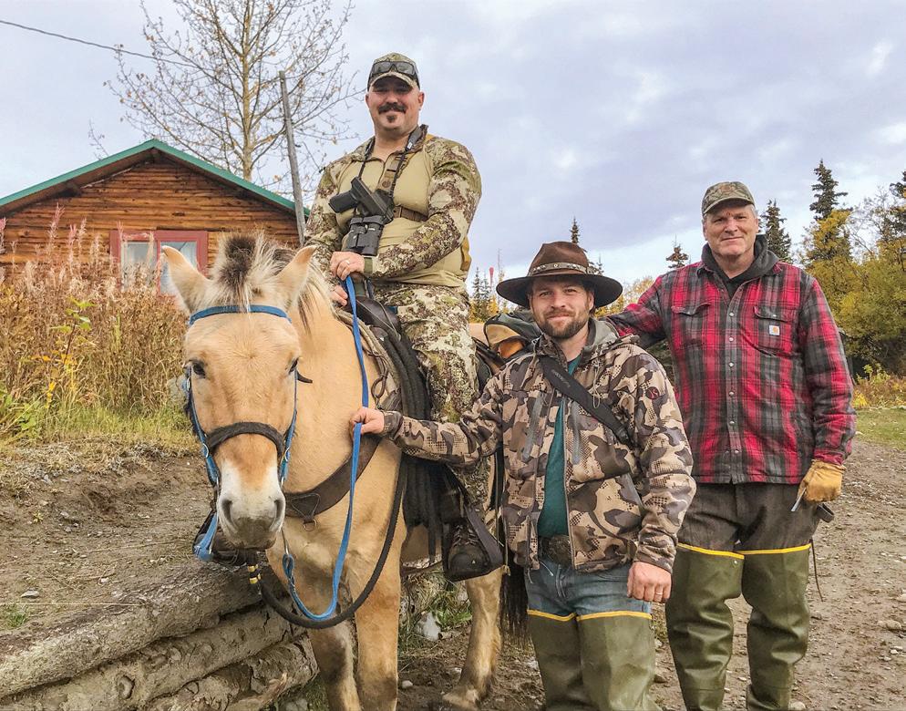“I could not help but smile at this amazing experience,” Fye says of the hunt. “Riding horses through the wilderness of Alaska, crossing rivers and rough terrain while going after a monster bull moose.” NOW IT WAS just me and my guide Stevie, who is my own age and a great person to hunt with. We really hit it off, and at this point, hunting with Stevie was more like hunting with a friend than hunting with a guide. The two of us headed up to the lookout spot hoping to find a grizzly.
