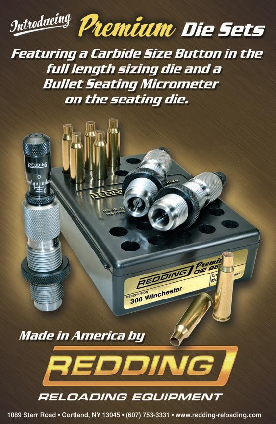 Most manufacturers o er a bondedcore design of some sort, including Federal’s Trophy Bonded Bear Claw, Trophy Bonded Tip, Terminal Ascent and Fusion; Hornady’s InterBond and DGX Bonded; Swift’s Scirocco II and A-Frame (the latter being a partitioned bullet with the front core bonded); Nosler’s AccuBond and AccuBond Long Range; and Norma’s Oryx and BondStrike designs. Australia’s Woodleigh Bullets makes their Weldcore roundnose softpoint with the same profile as the old Kynoch projectiles, which were used to regulate so many British hunting rifles, yet they have bonded the core to the jacket. This bullet has served me very well in Alaska, Africa and here in my native New York for game animals ranging in size from black bear and whitetail deer to kudu and zebra.