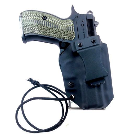Holsters feature adjustable retention, a 550 corded loop for securing to a belt or belt loop, semiclosed bottom that can be left open for threaded barrels on request, different body shield heights in low, medium and high upon request, and nonbinding smooth edges with no sharp points in their designs for comfort. Different colors and patterns available upon request.